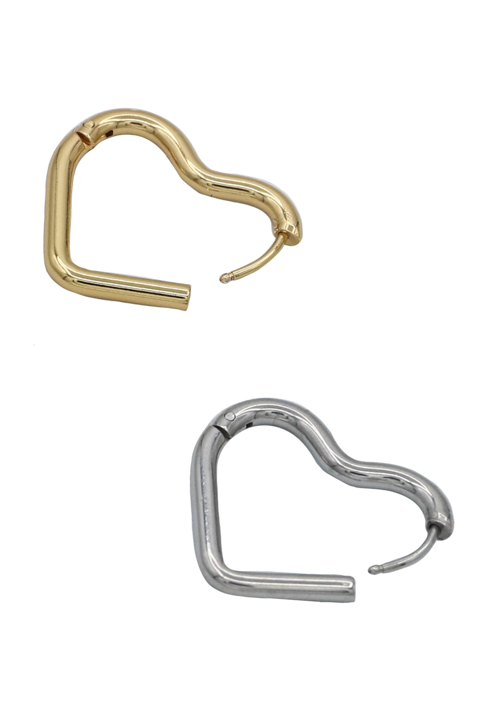 - These exquisite heart-shaped hoop earrings are the perfect blend of modern chic and timeless elegance. Their minimalist design ensures they complement any outfit, adding a touch of sophistication without being overpowering. Whether you're dressing up for a special occasion or simply adding a touch of glamour to your casual look, these earrings are a versatile accessory.