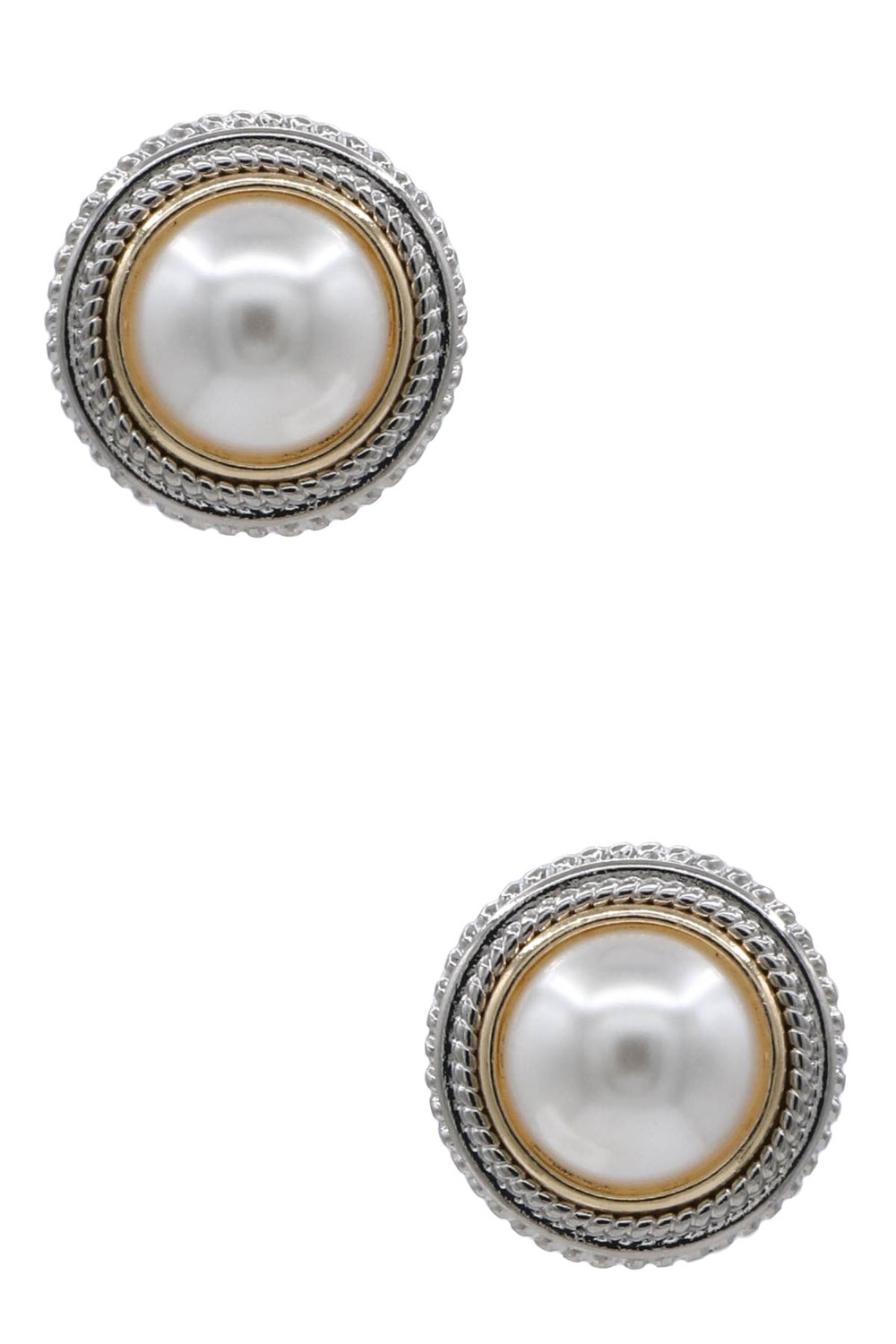 - Elegant post earrings featuring a classic pearl set within a sleek Two Tone-style circle design. Timeless and versatile, these earrings add a refined touch of shine to both everyday and dressy looks.