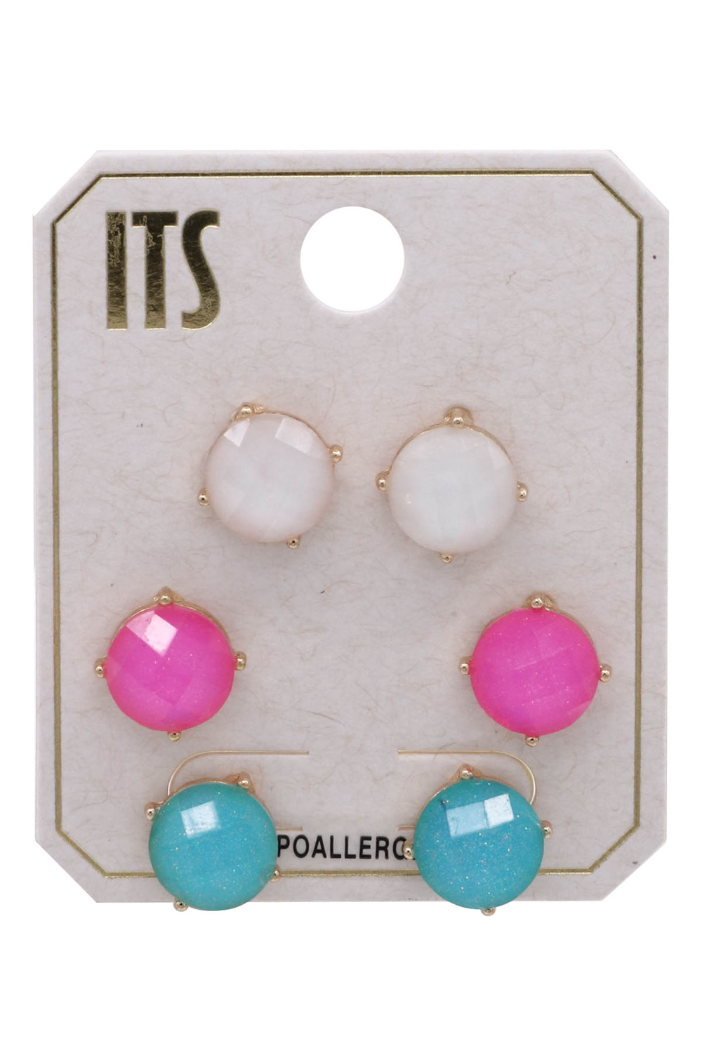 - Versatile 3-piece stud earring set featuring colorful resin stone designs. Lightweight and comfortable for all-day wear, these mix-and-match studs are perfect for everyday styling, layering multiple piercings, or adding a subtle pop of color to any outfit.