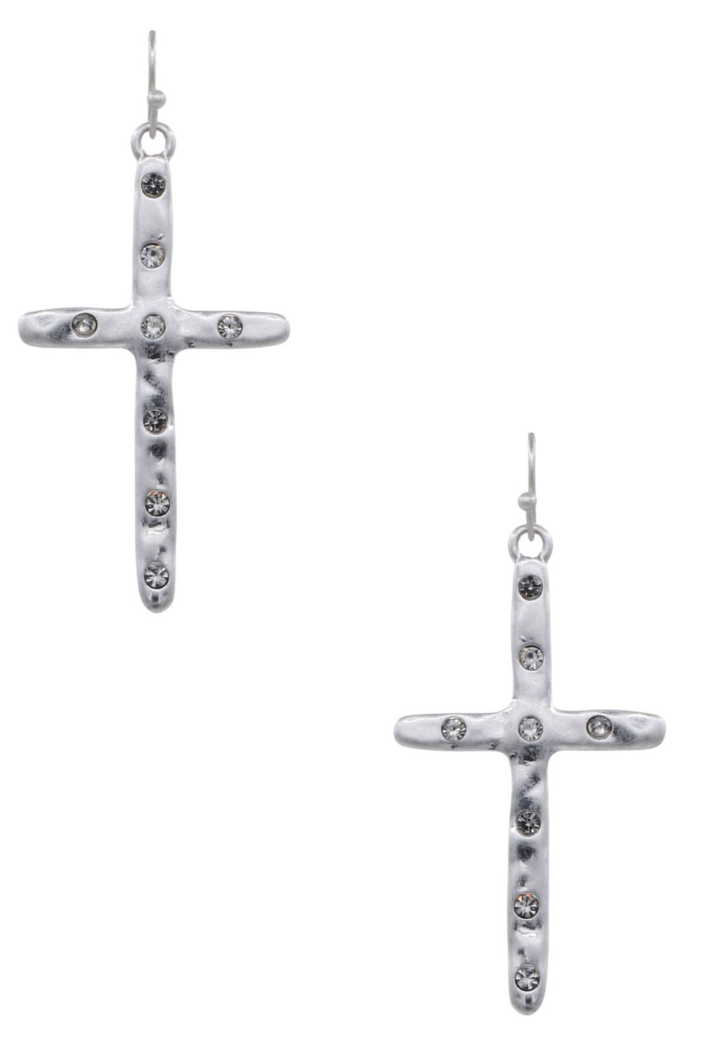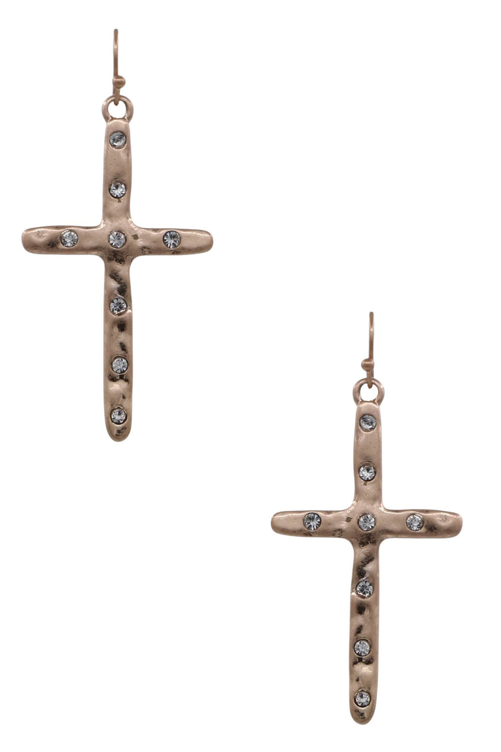 - Chic and stylish earrings showcasing a hammered cross design adorned with rhinestones. Ideal for adding shimmer and meaning to your look.
