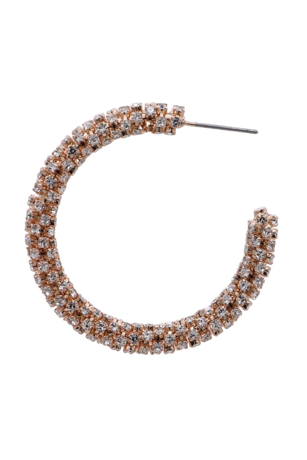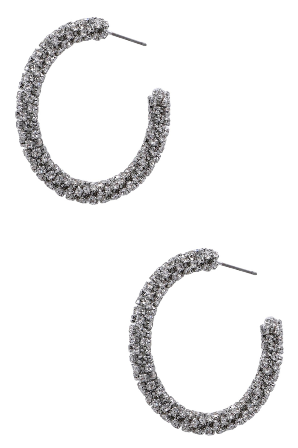 - Chic and glamorous, these open hoop earrings feature shimmering rhinestones that add the perfect touch of sparkle to any outfit. Ideal for both casual and dressy looks.