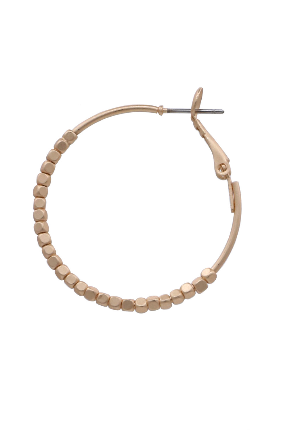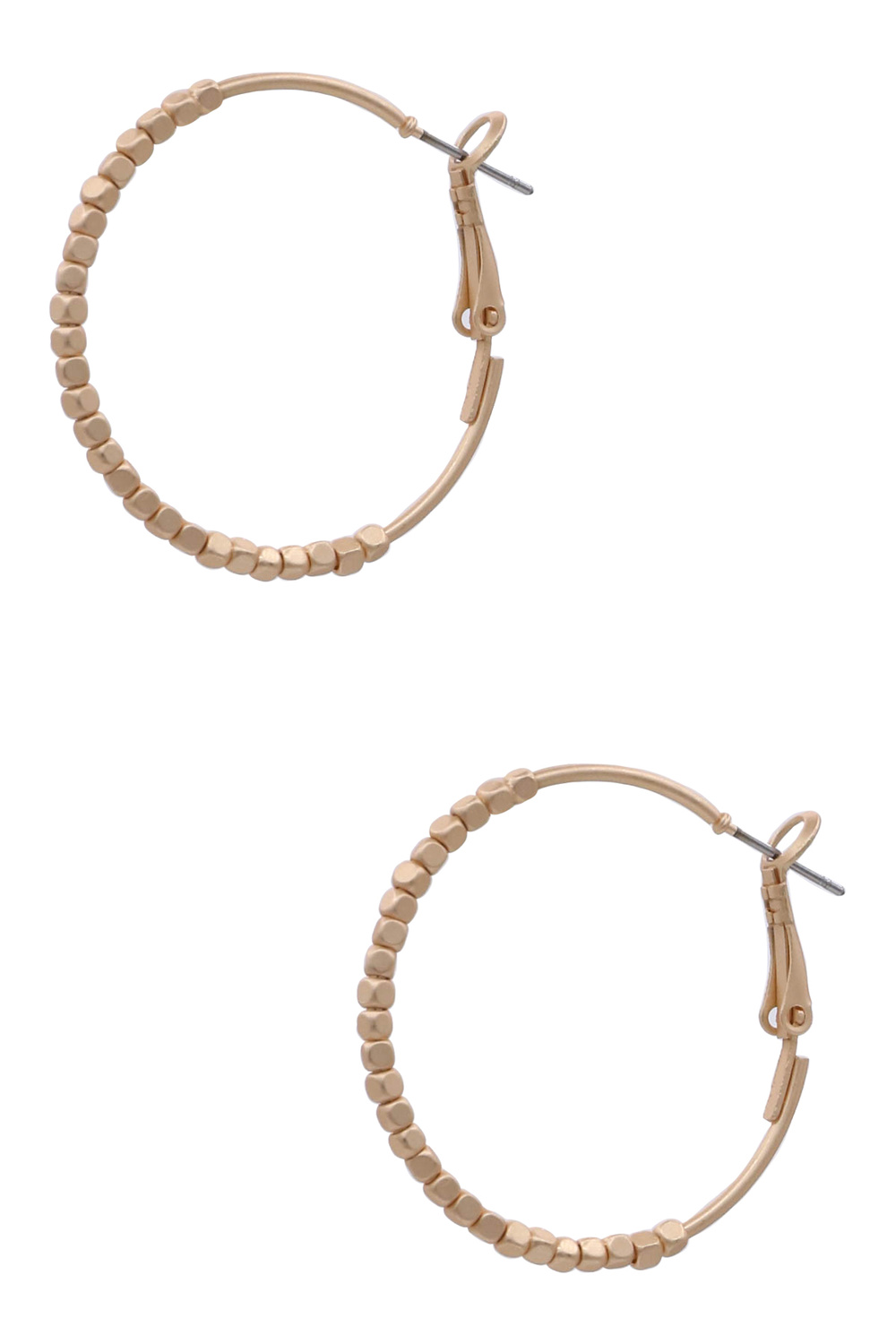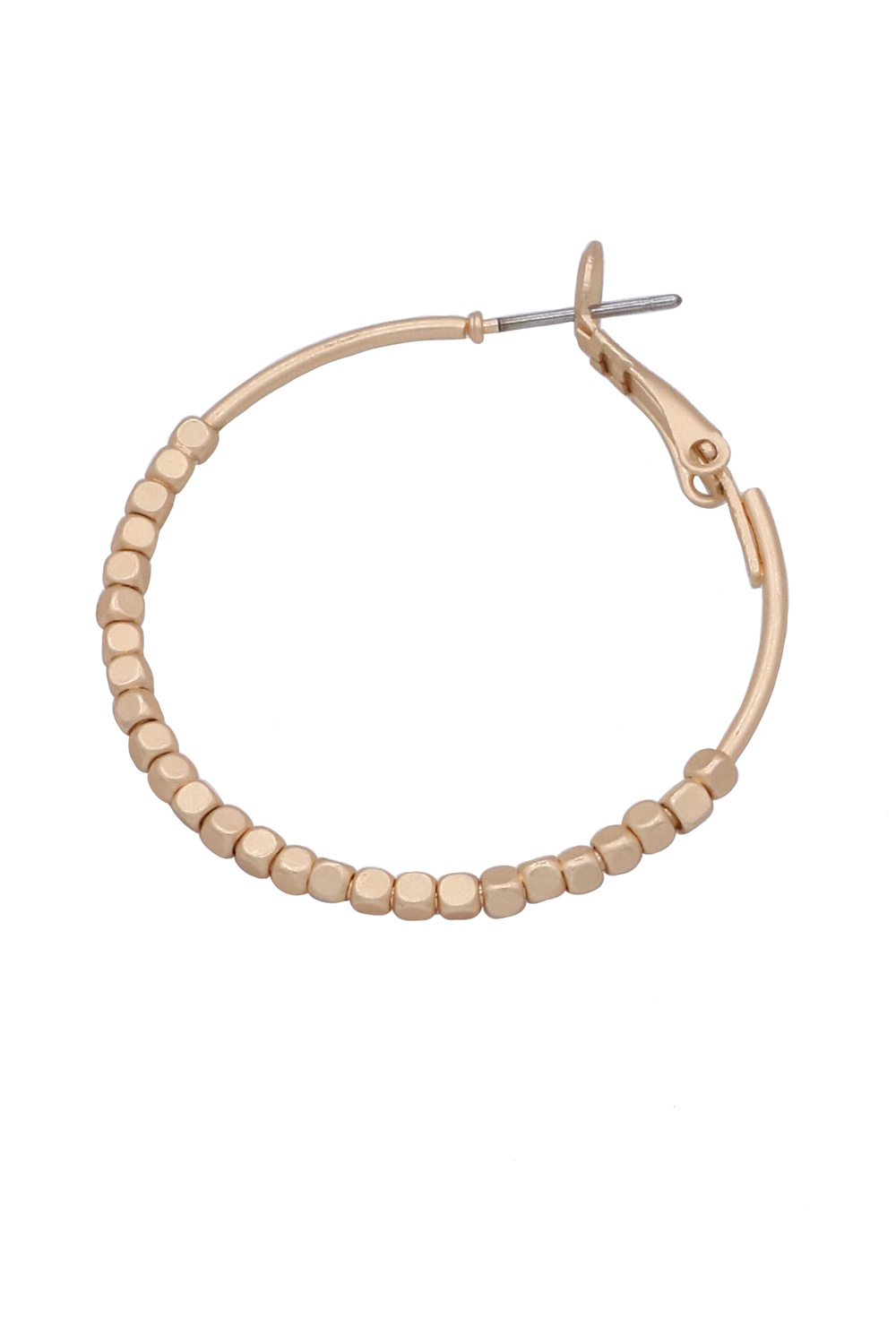 - These exquisite hoop earrings are a testament to understated elegance and contemporary style. Featuring a delicate hoop adorned with uniformly spaced, tiny square beads, they offer a subtle yet captivating texture. Their ability to complement a wide range of styles makes them a must-have addition to any jewelry collection, promising to elevate your look with their subtle yet impactful presence.