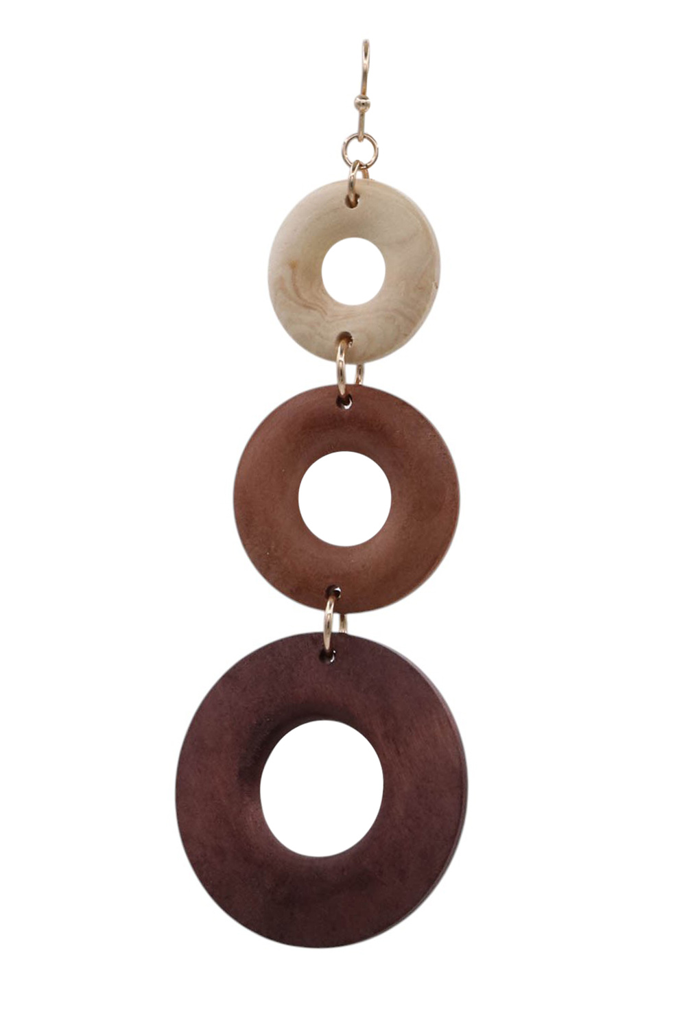 - Chic and boho-inspired, these earrings showcase three stacked round wood layers for texture and movement.