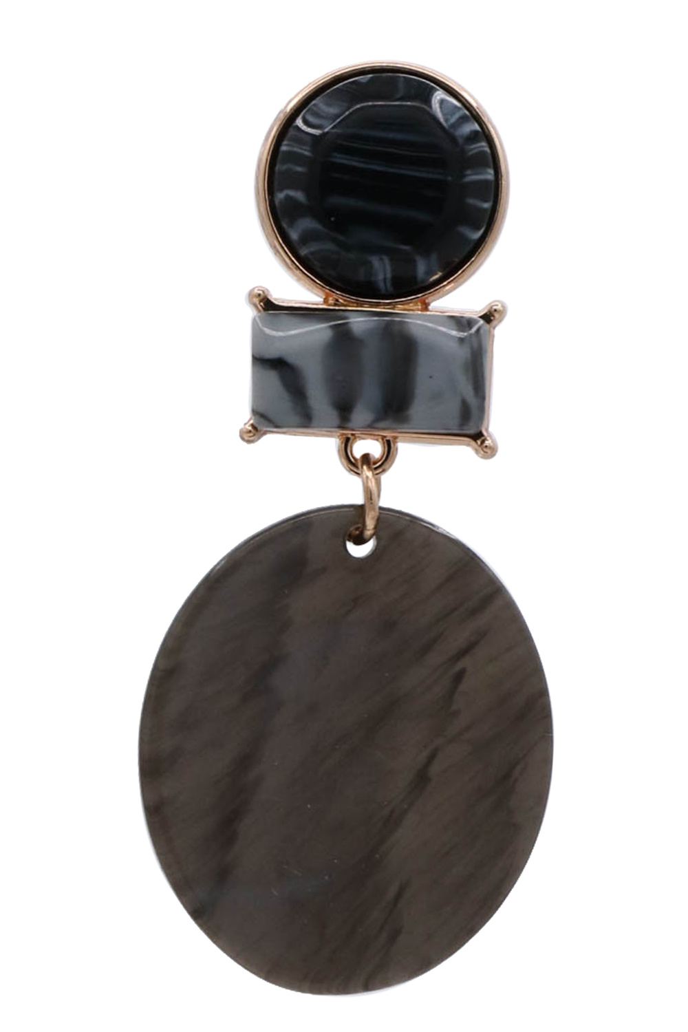 - Chic and modern, these layered resin earrings showcase geometric shapes in a three-tier design for eye-catching movement.