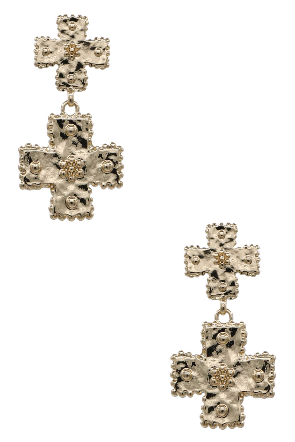 - Stylish cross earrings with a unique textured surface for a handcrafted look. Lightweight and versatile for everyday or special occasions.