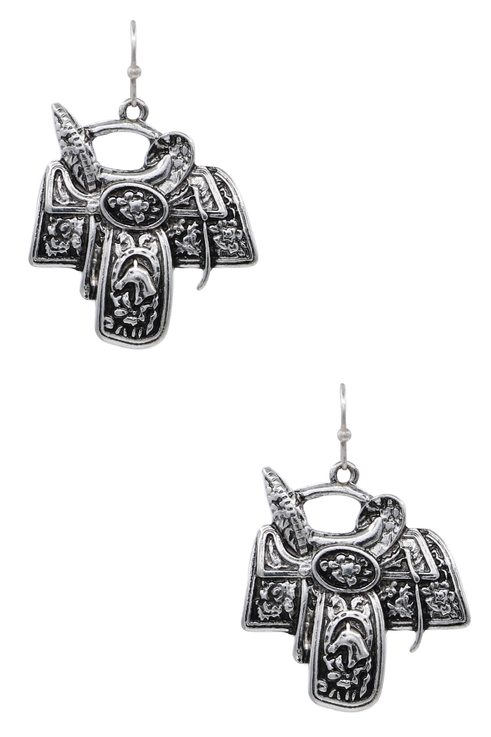- Western saddle-shaped drop earrings. Trendy, lightweight, and perfect for casual, western, or themed outfits