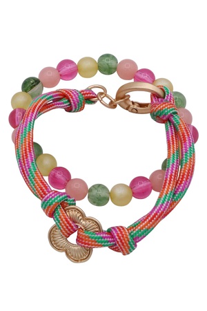 Flower Beaded Cord & Stretch Bracelet Set