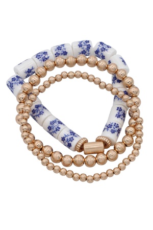 Ceramic Flower Charm Metal Beaded Bracelet Set