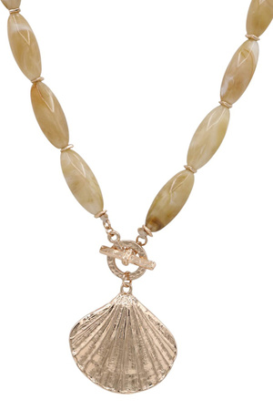 Beaded Acrylic Stone Necklace Metal Shell Charm