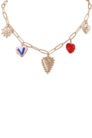 Metal Stone Pendant Horseshoe Heart Charm Necklace
