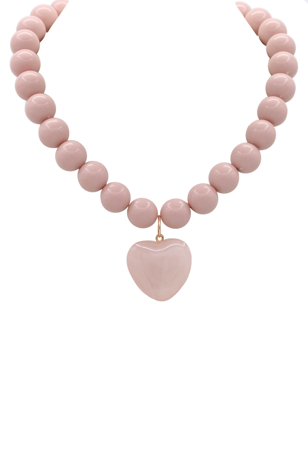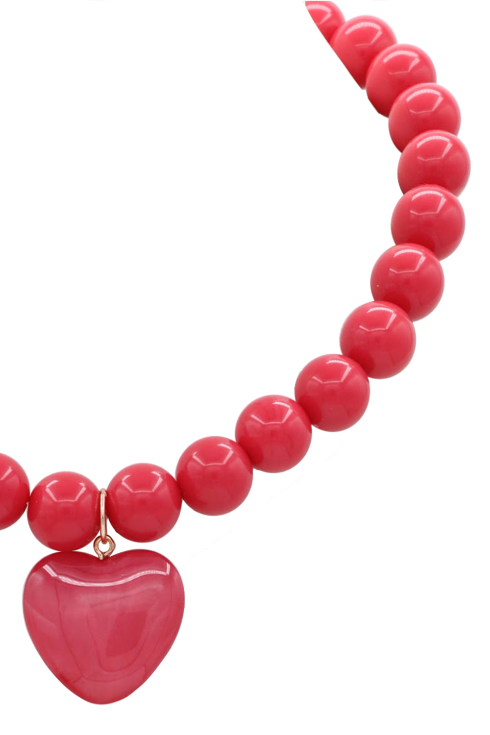 - Chic and playful, this necklace combines acrylic ball beads with a heart pendant for a fun yet stylish look. Ideal for casual outfits or layering.
