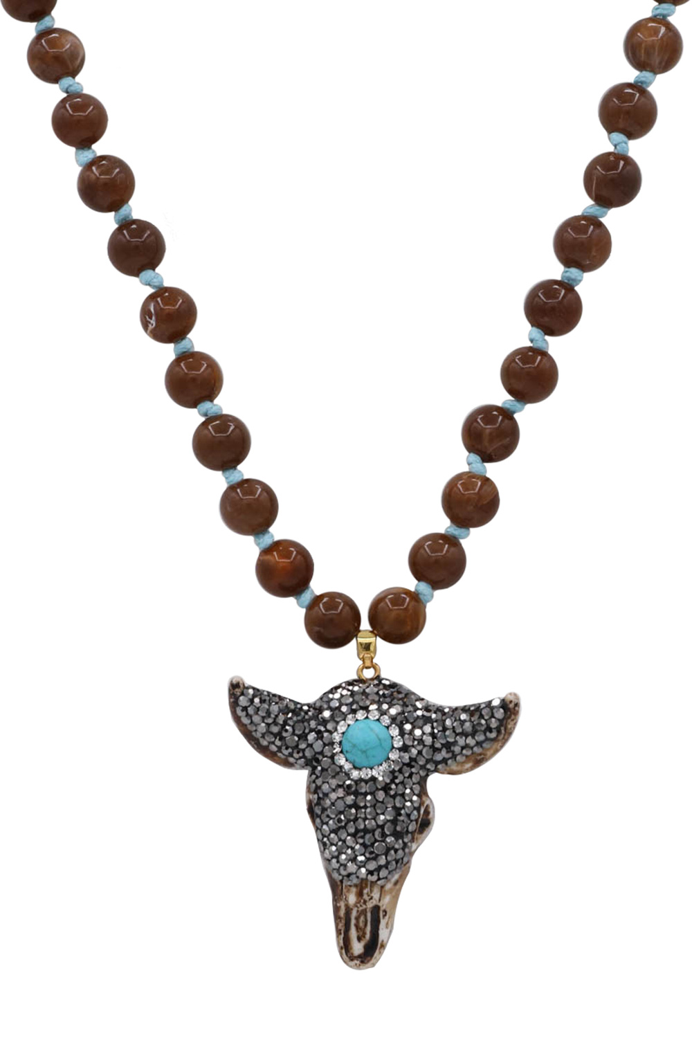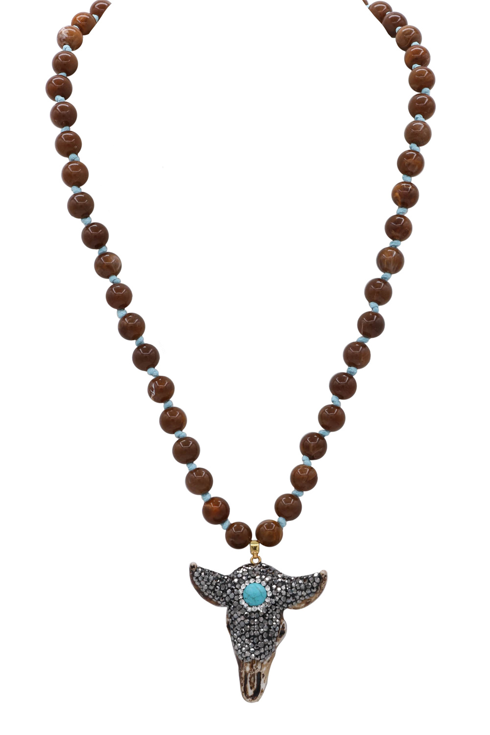 - A bold beaded statement necklace finished with a striking bull pendant. Designed to add western-inspired edge and standout style to any outfit.