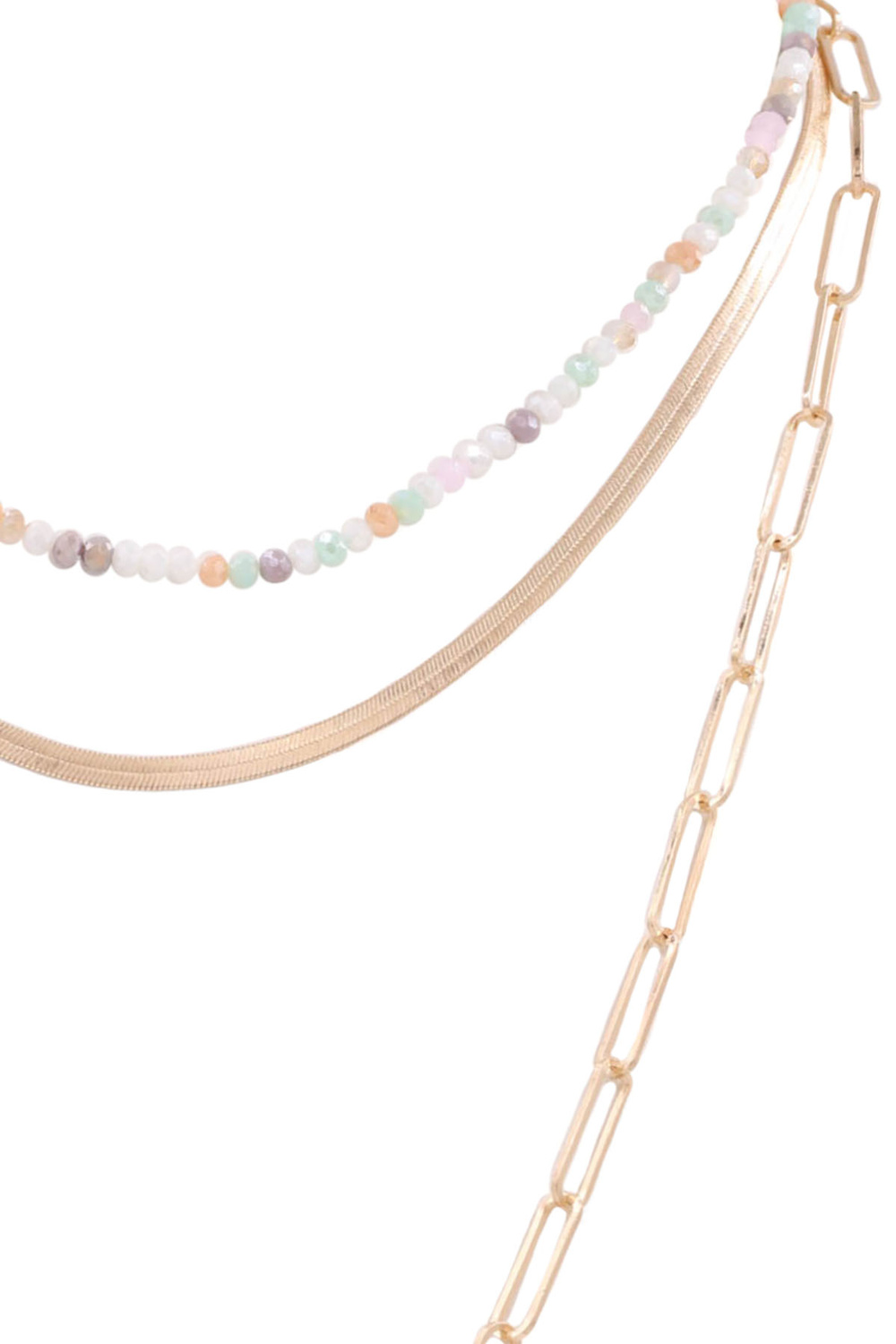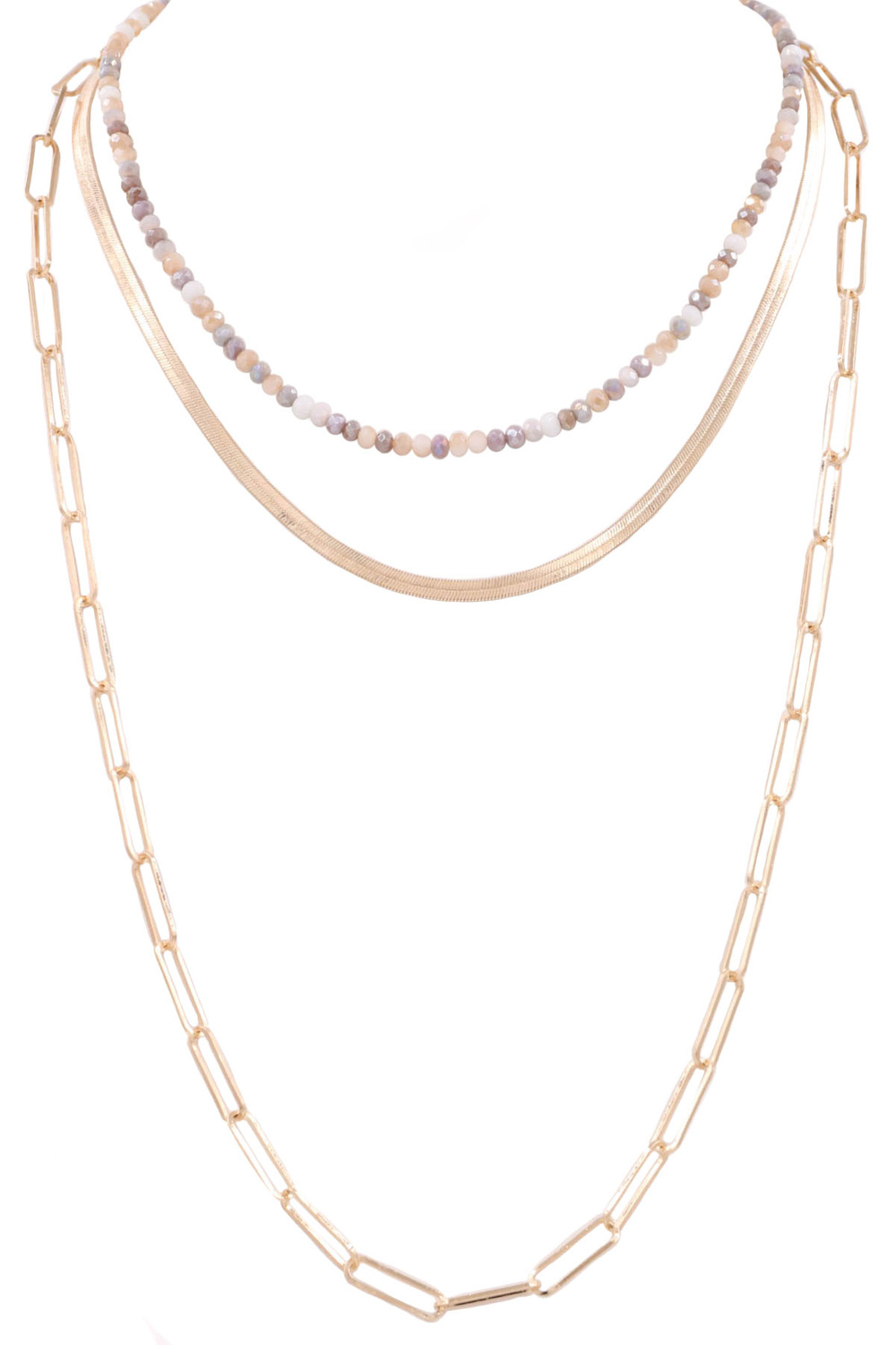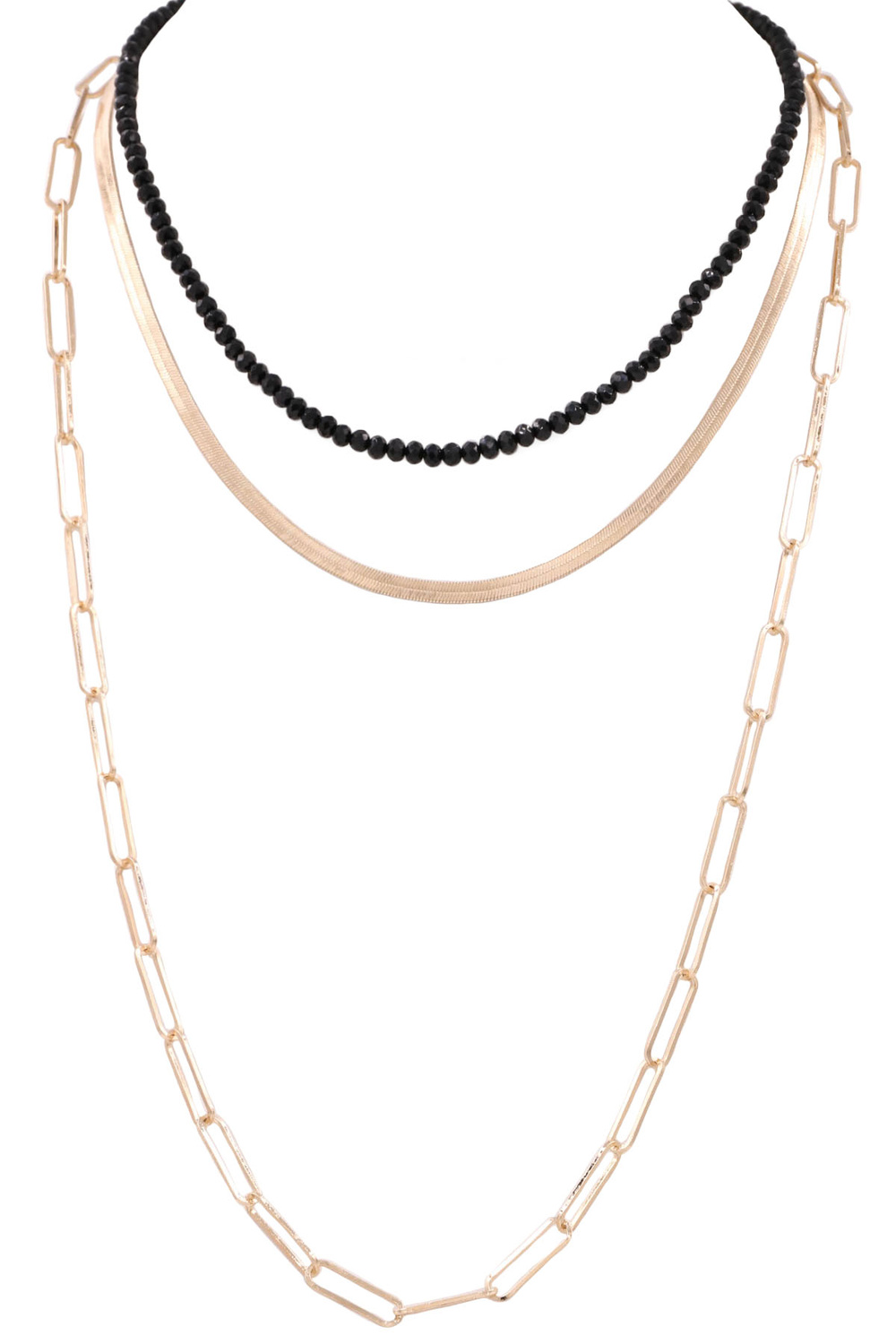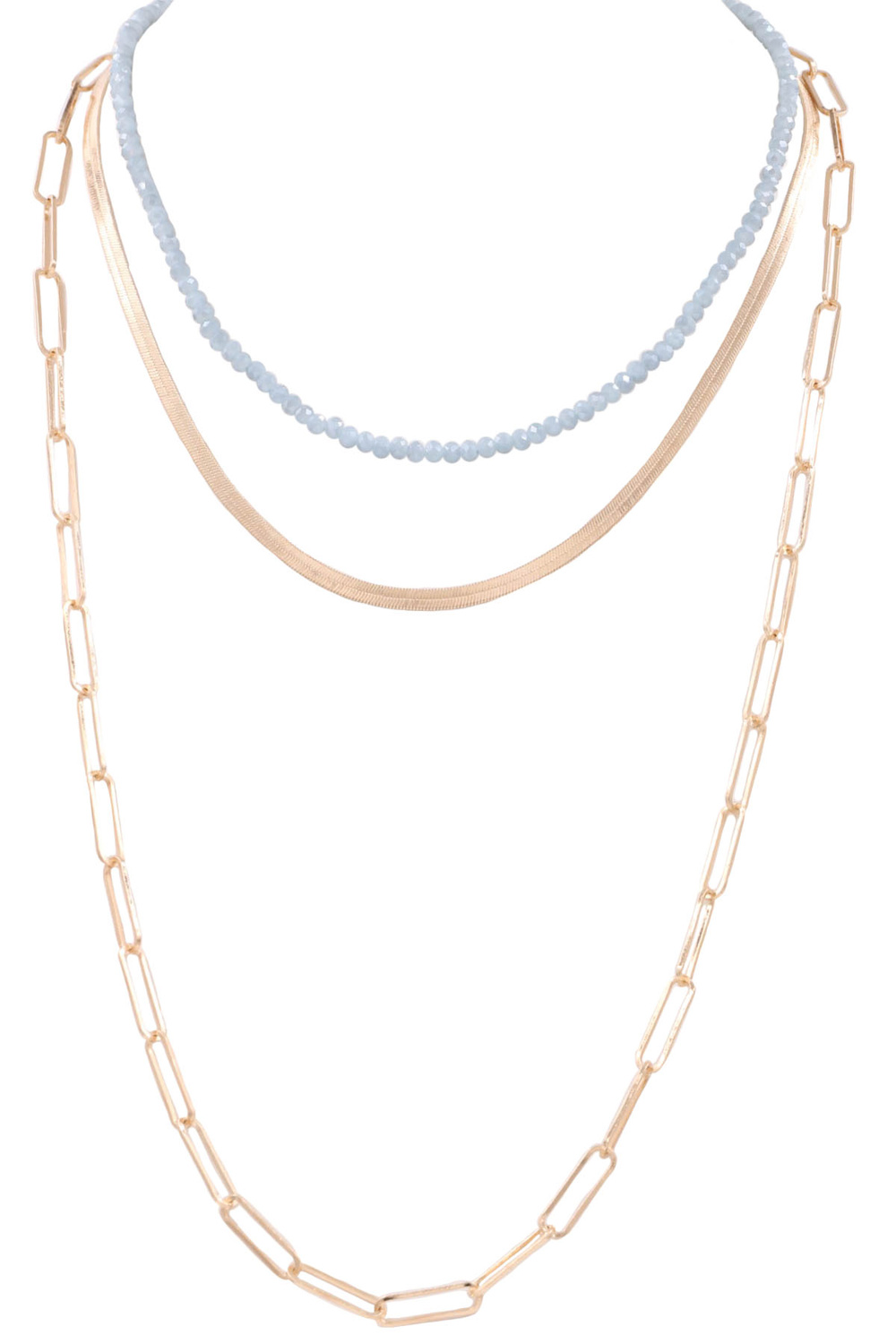 - Metal chain faceted bead layered long 3-piece necklace set