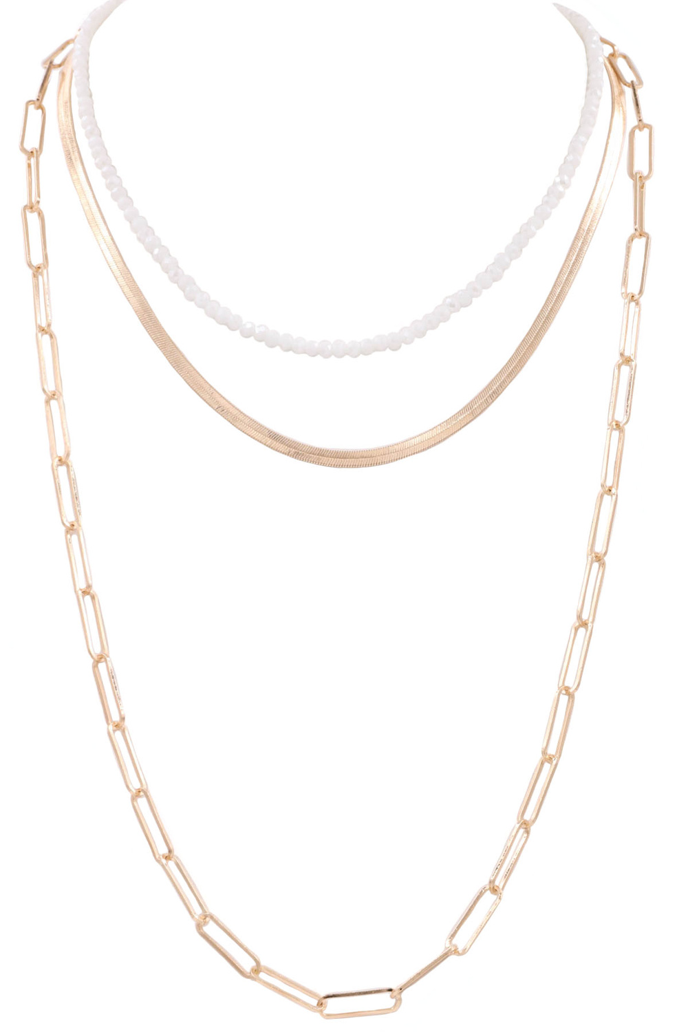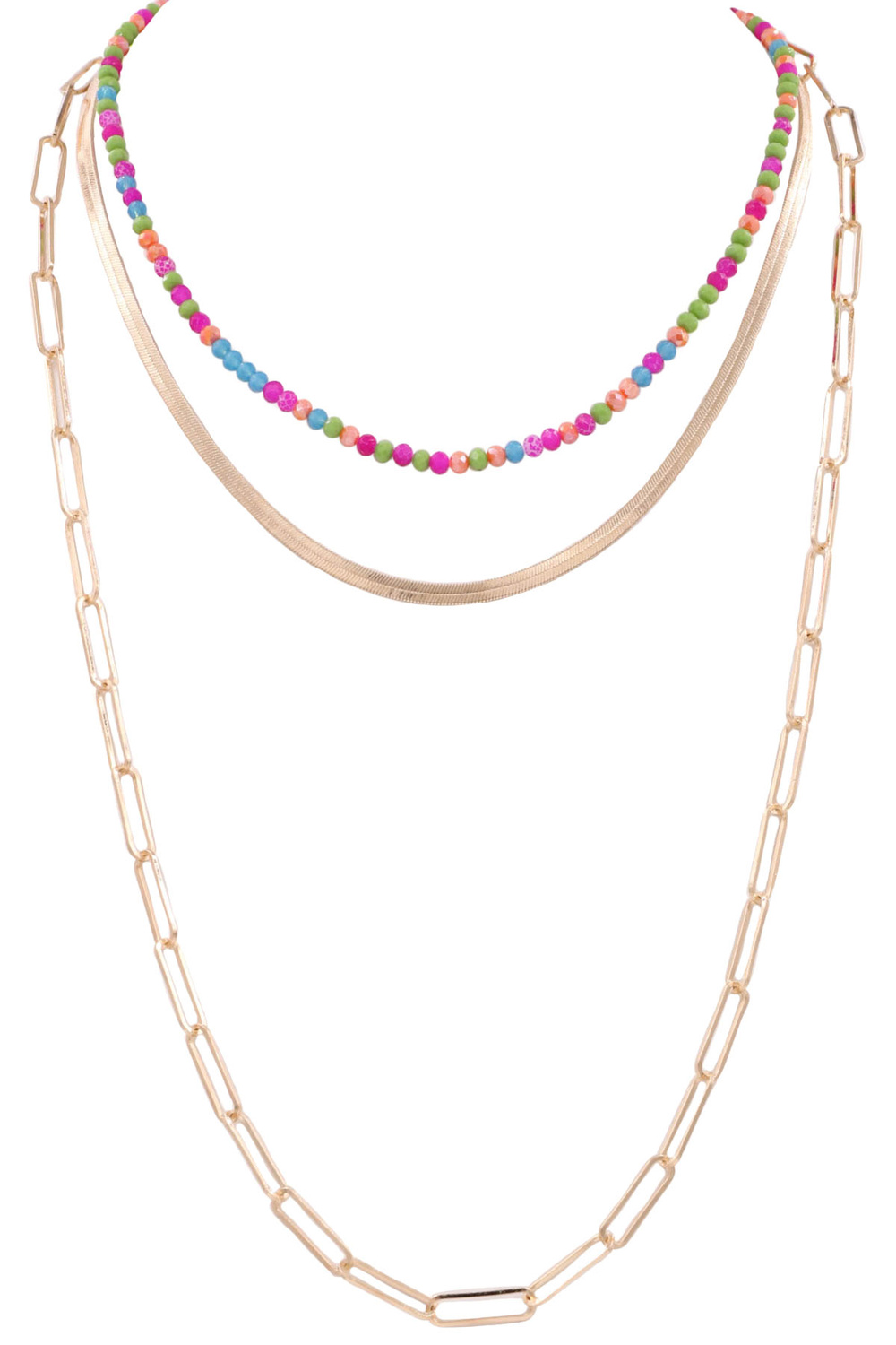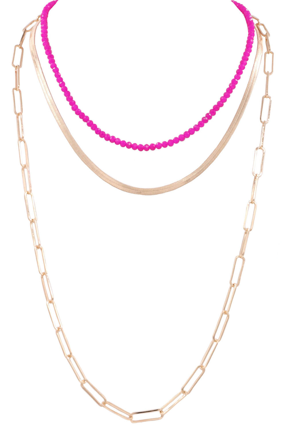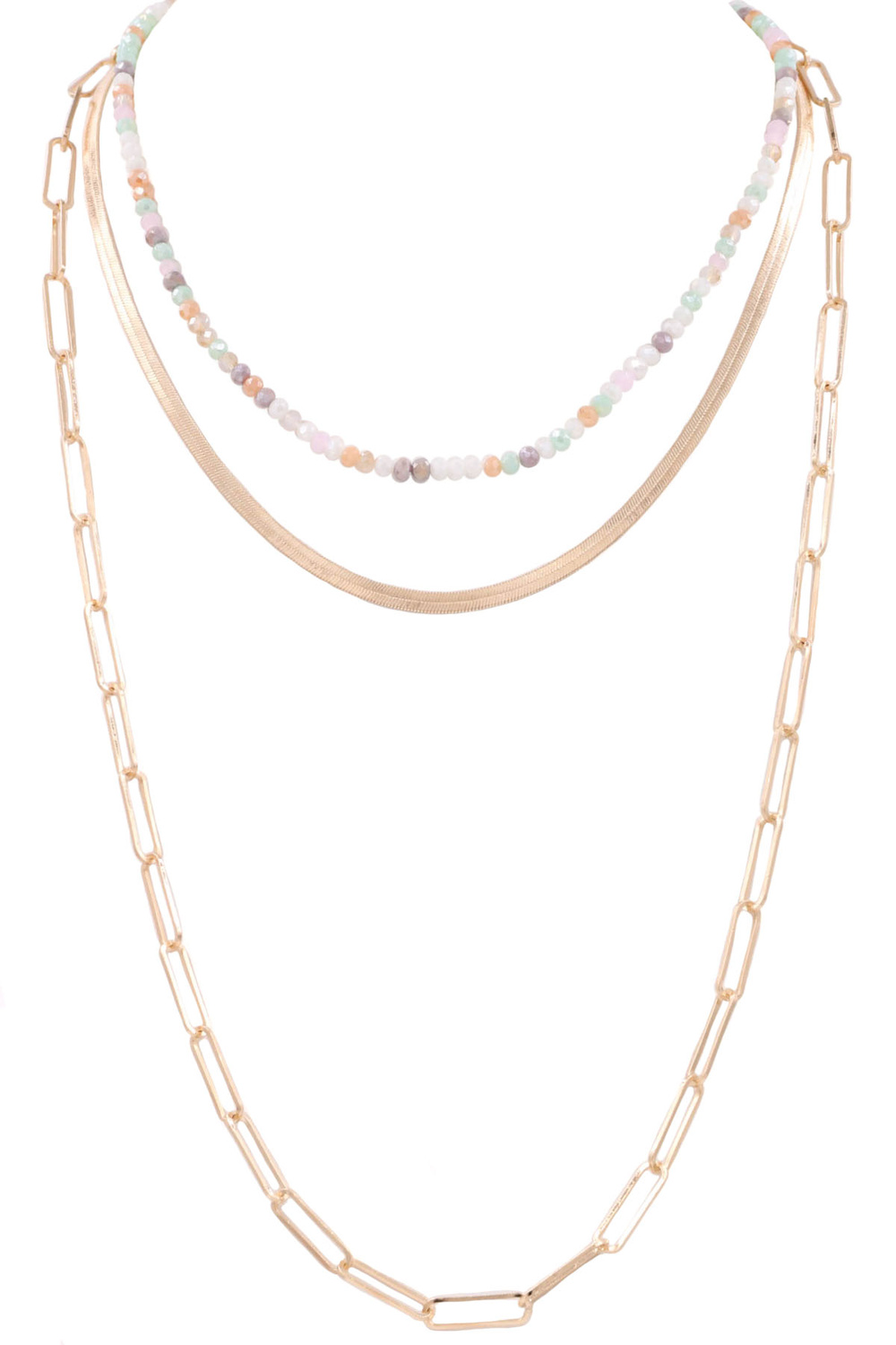 - Metal chain faceted bead layered long 3-piece necklace set