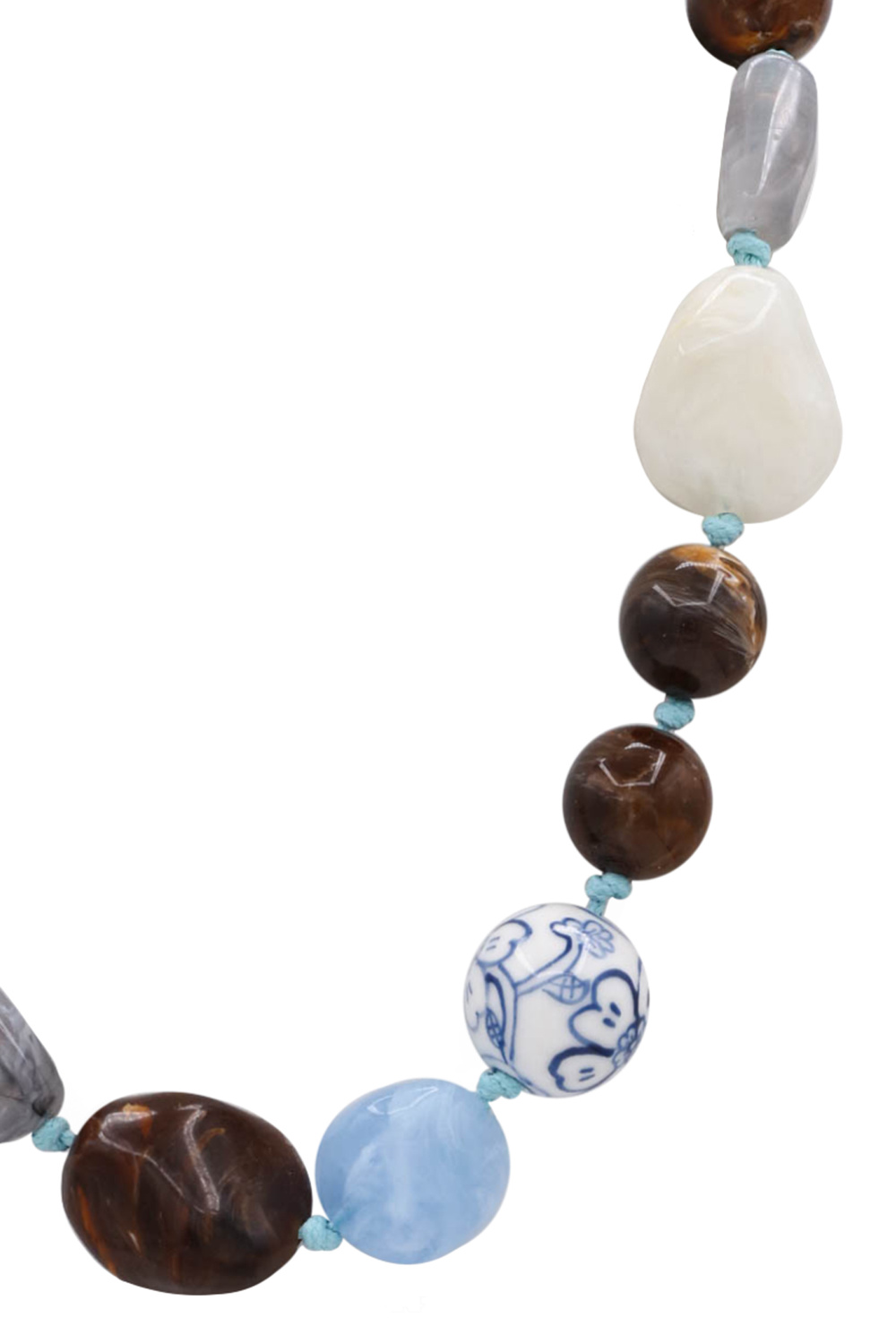 - This eye-catching necklace features oversized acrylic beads in an extended length. Designed to elevate everyday outfits with a bold, contemporary touch.