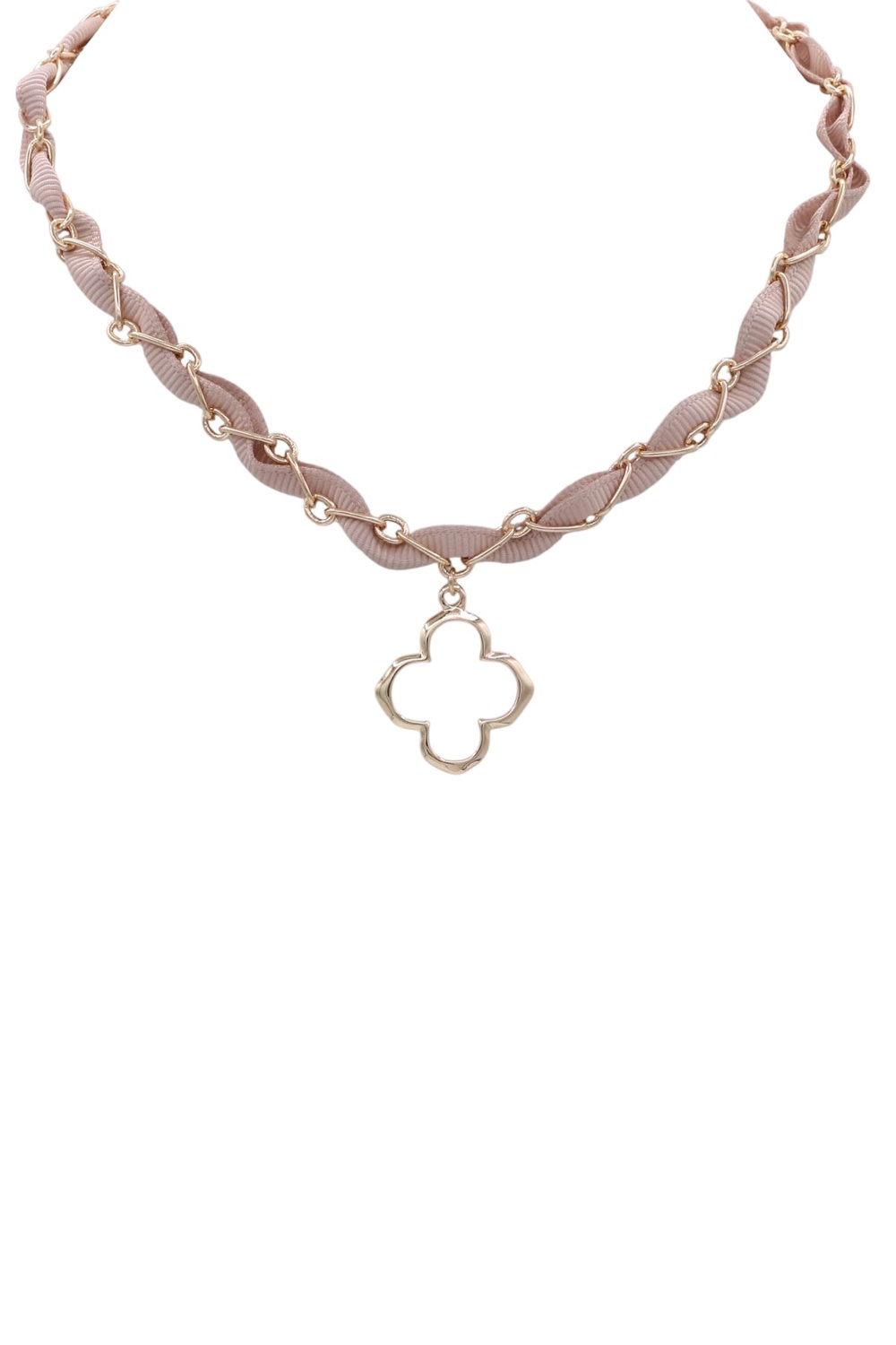- Fabric necklace featuring a clover pendant. Lightweight and stylish-perfect for everyday wear or a touch of luck.