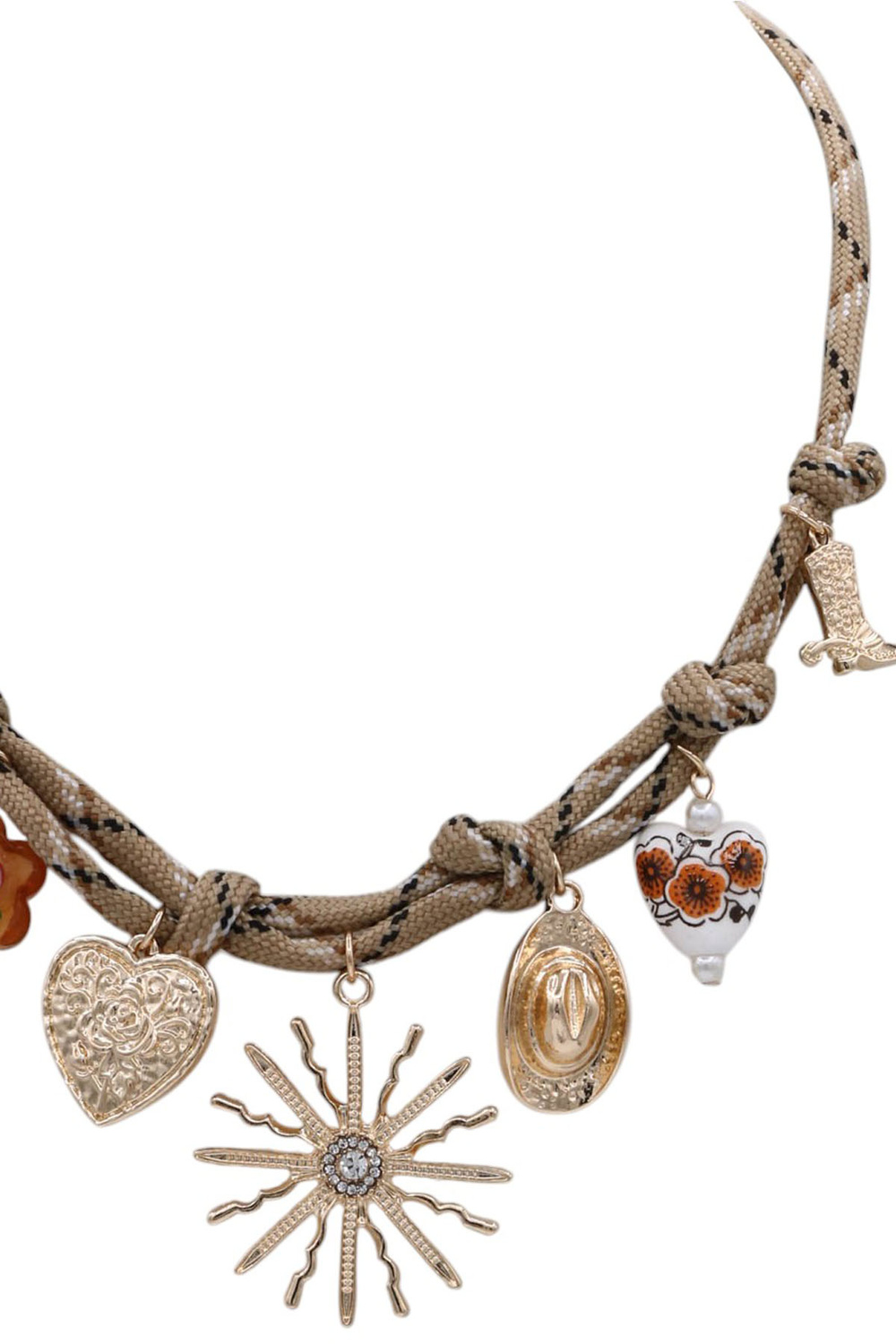- Cotton rope necklace featuring ceramic sun and heart charms. Natural, lightweight, and perfect for everyday wear.