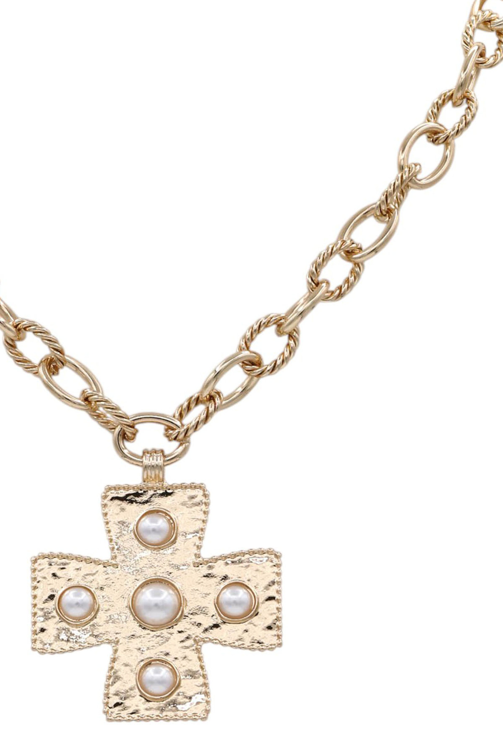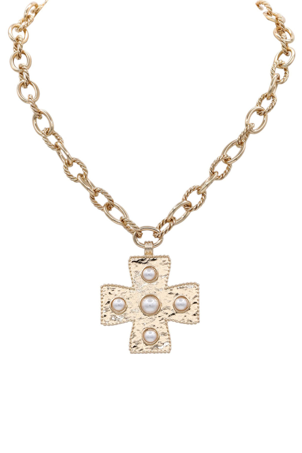 - Sleek and stylish necklace with a linked metal chain and a detailed cross pendant. Perfect for everyday wear or layering with other pieces.
