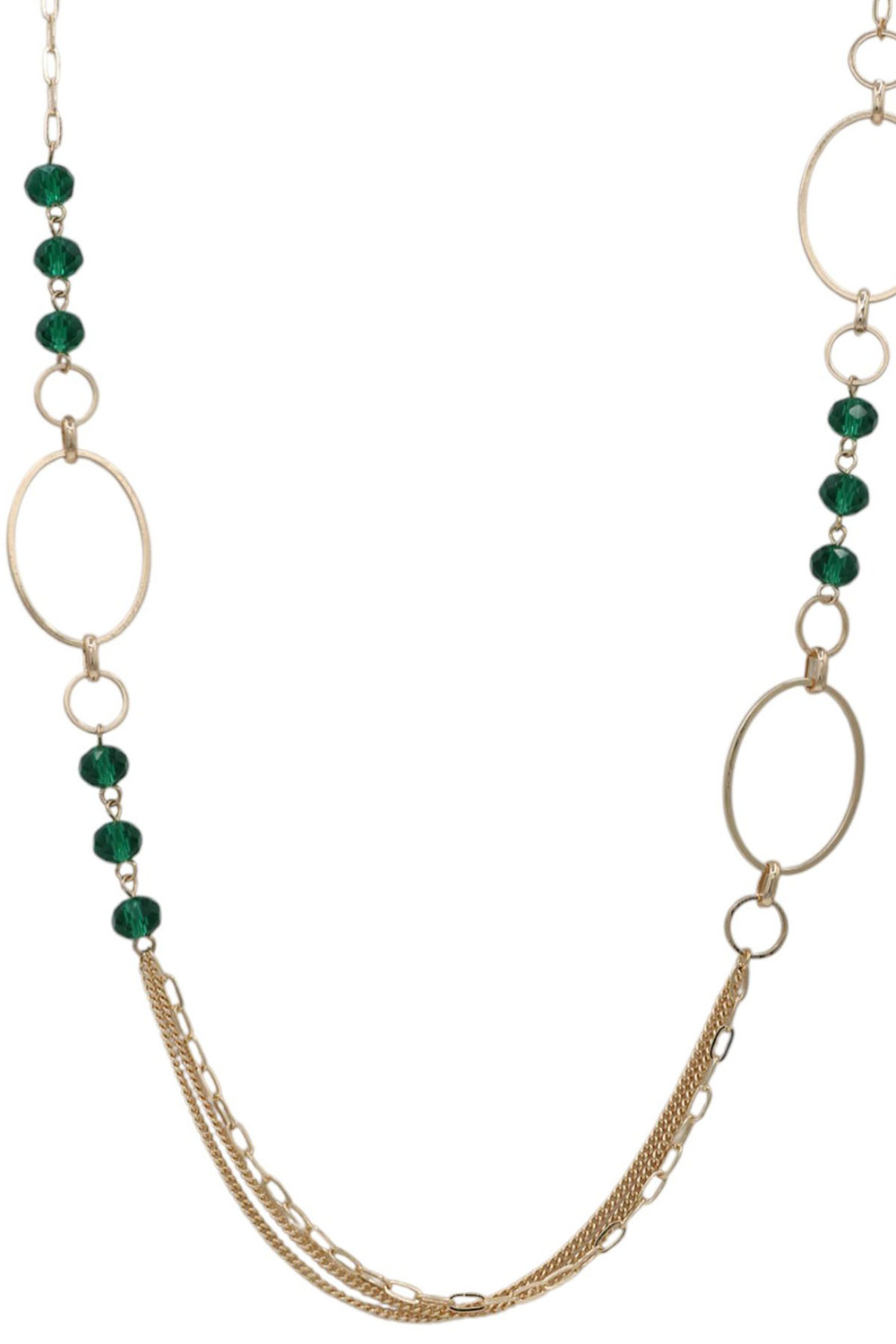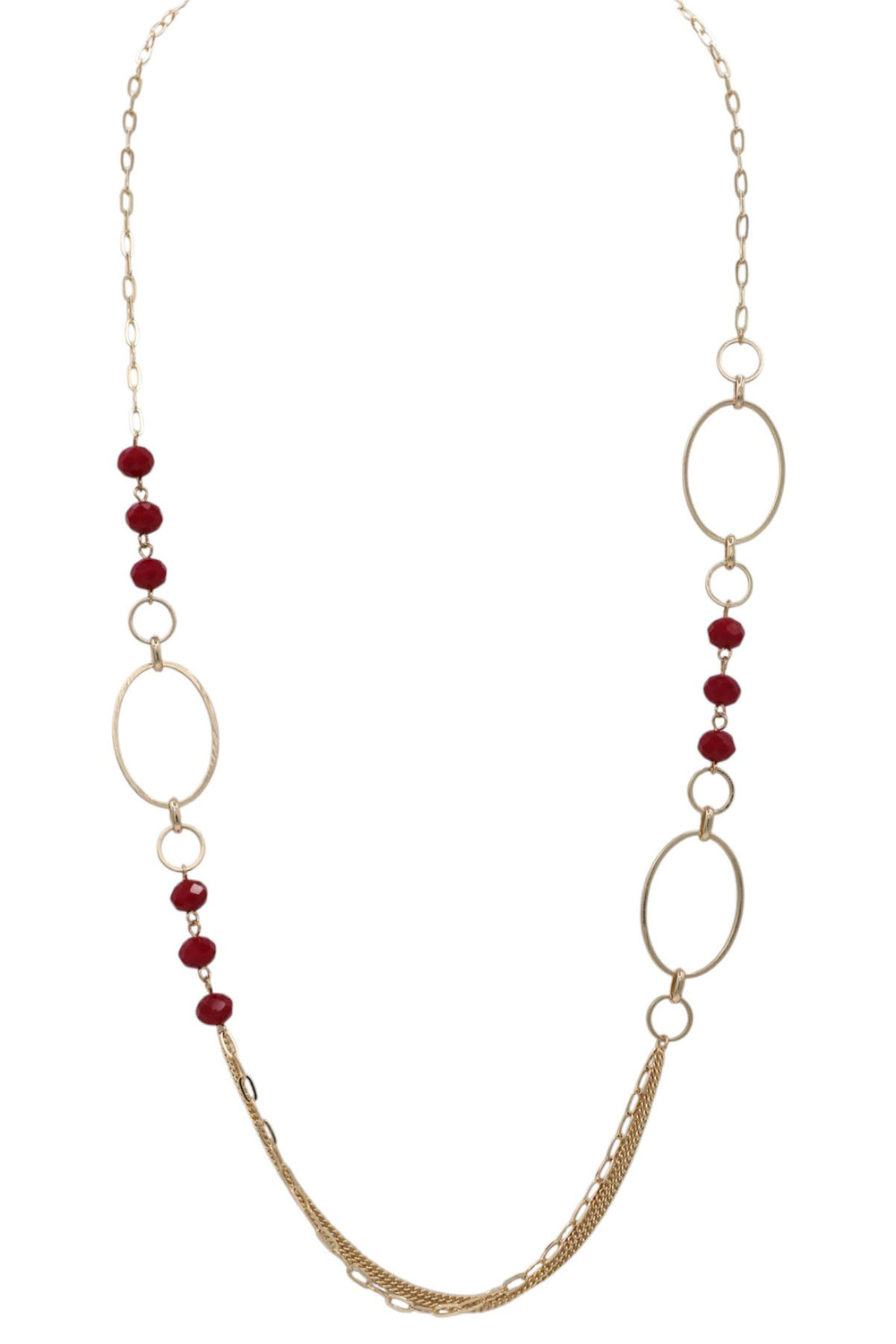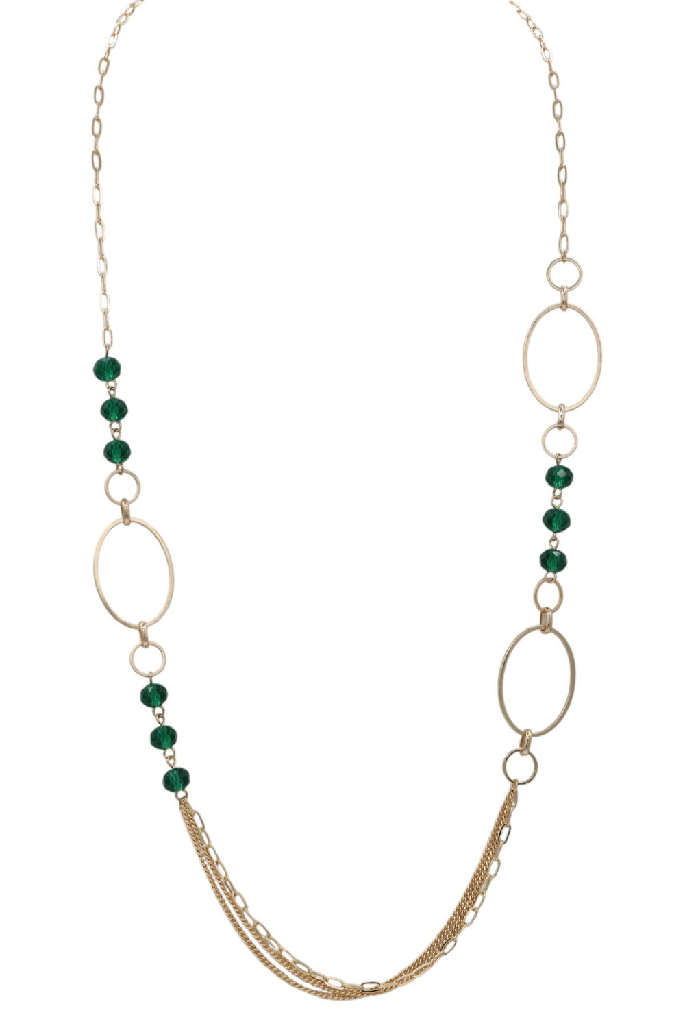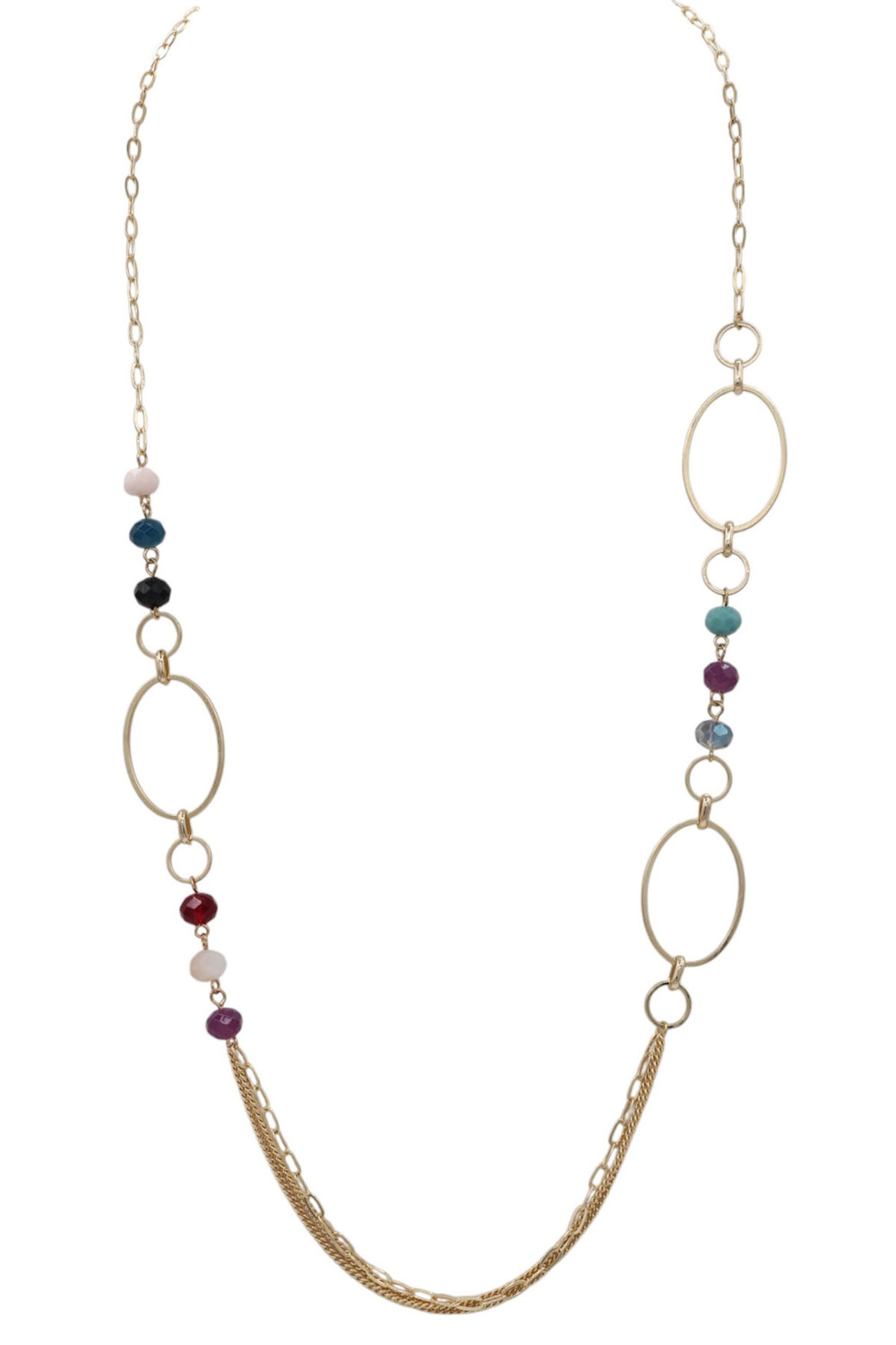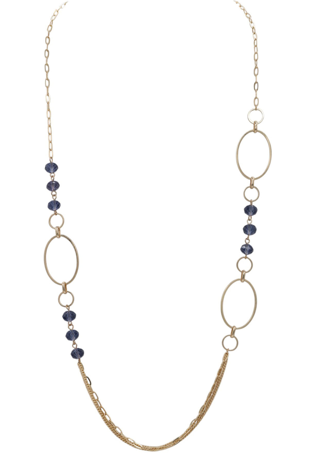 - Delicate glass beads and a sleek oval pendant create effortless sophistication in this long necklace. Perfect for layering or adding a refined touch to any outfit.