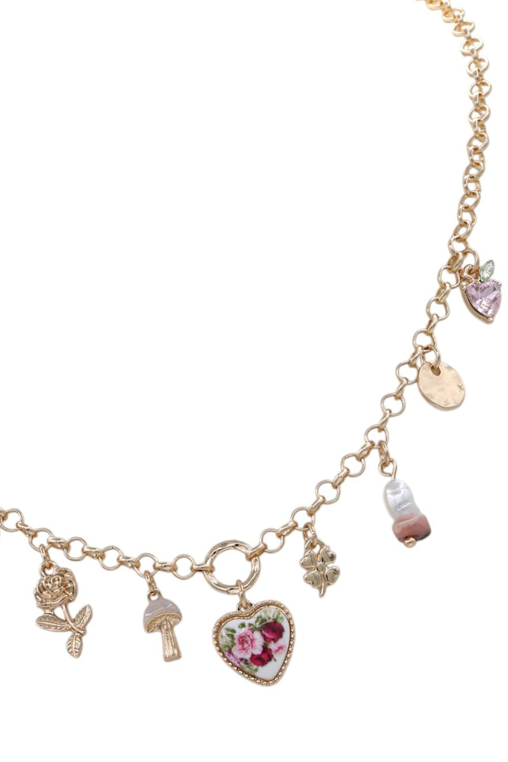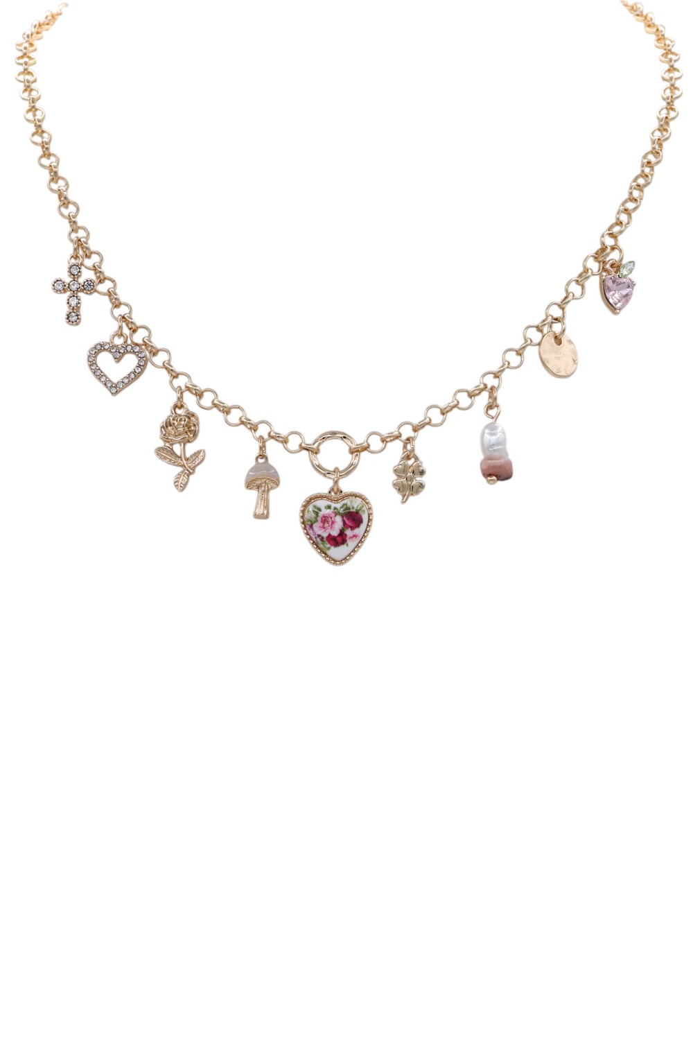 - Trendy necklace with multiple metal charms, combining heart and cross designs for a versatile, meaningful accessory.