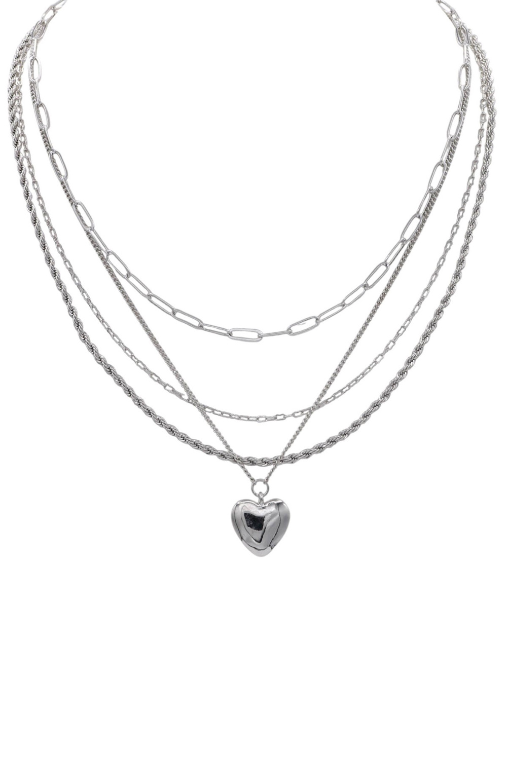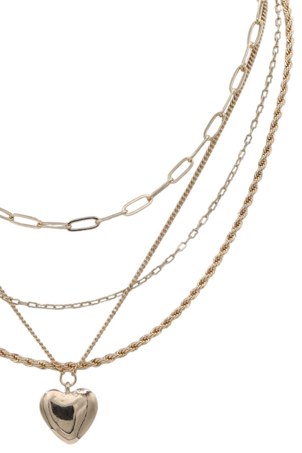 - A chic layered necklace featuring mixed metal chains and a dainty heart pendant. Perfect for adding a soft, romantic touch to everyday or boutique-inspired looks.