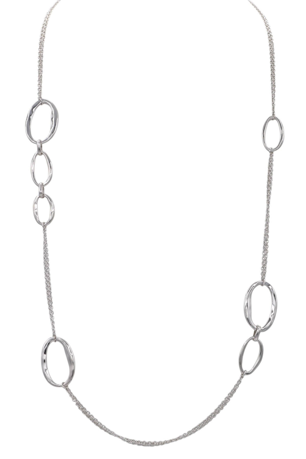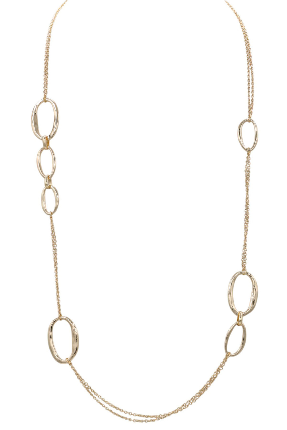 - Modern long necklace with smooth oval links in a shiny metal finish. Ideal for layering or wearing solo for effortless sophistication.