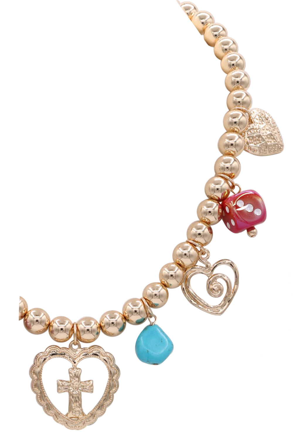 - A charming necklace set featuring metal beading accented with multiple heart charms. Playful yet polished, this versatile set is perfect for layering or wearing together for a sweet statement look.