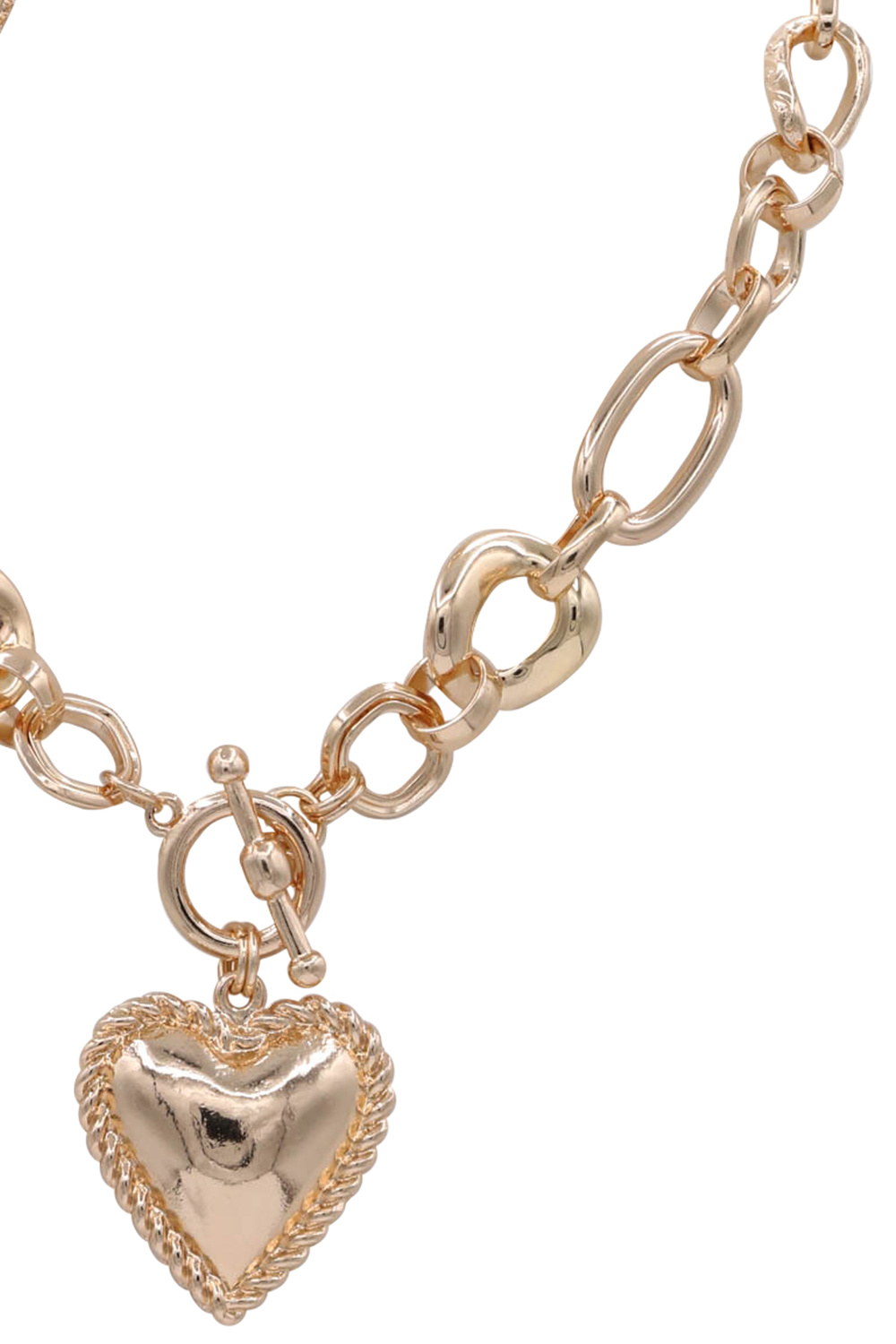- Chic and romantic, this jewelry set includes a heart toggle chain necklace paired with matching earrings.