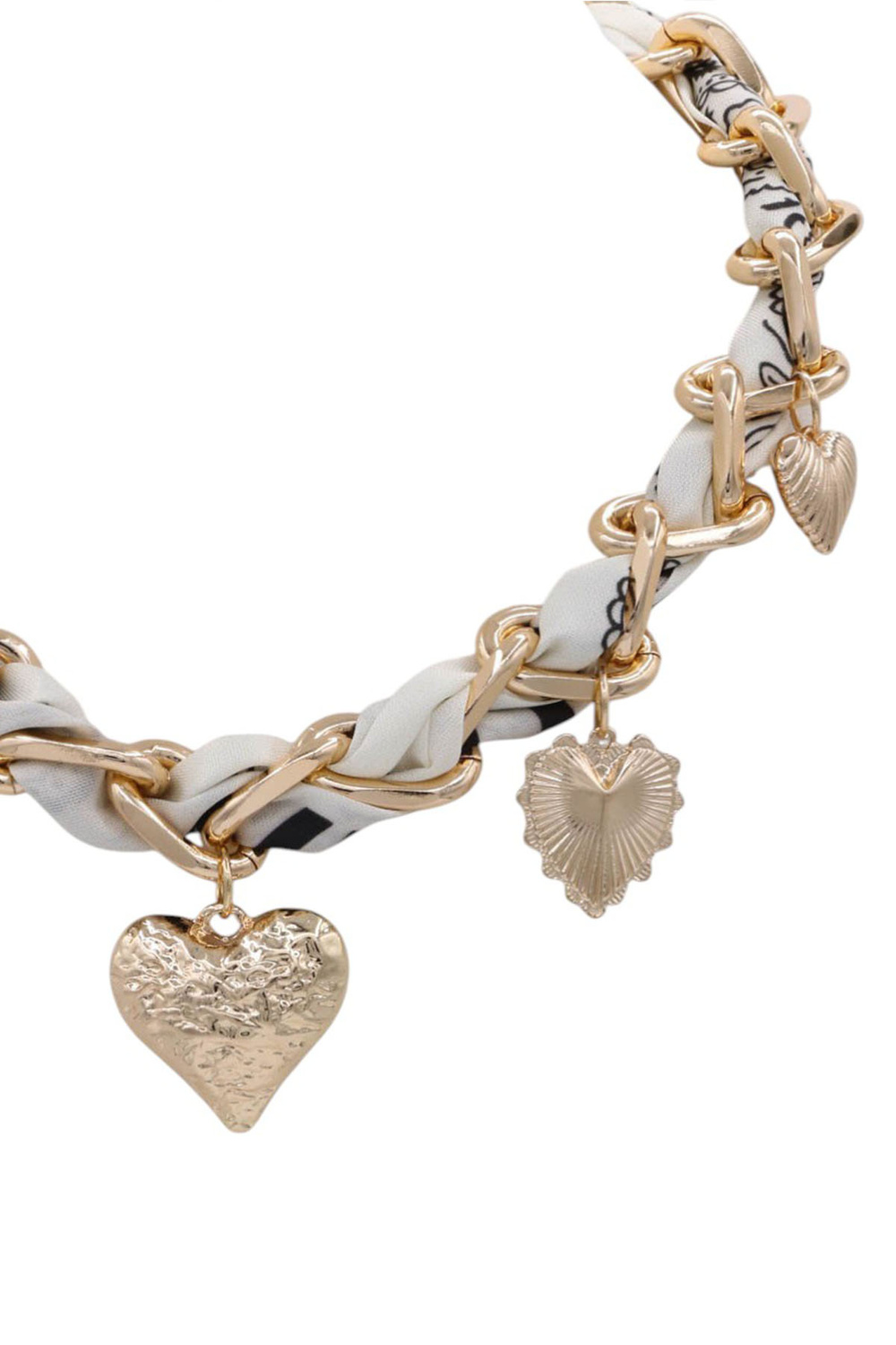 - Fabric chain necklace featuring multiple heart charms. Sweet and stylish-perfect for everyday wear
