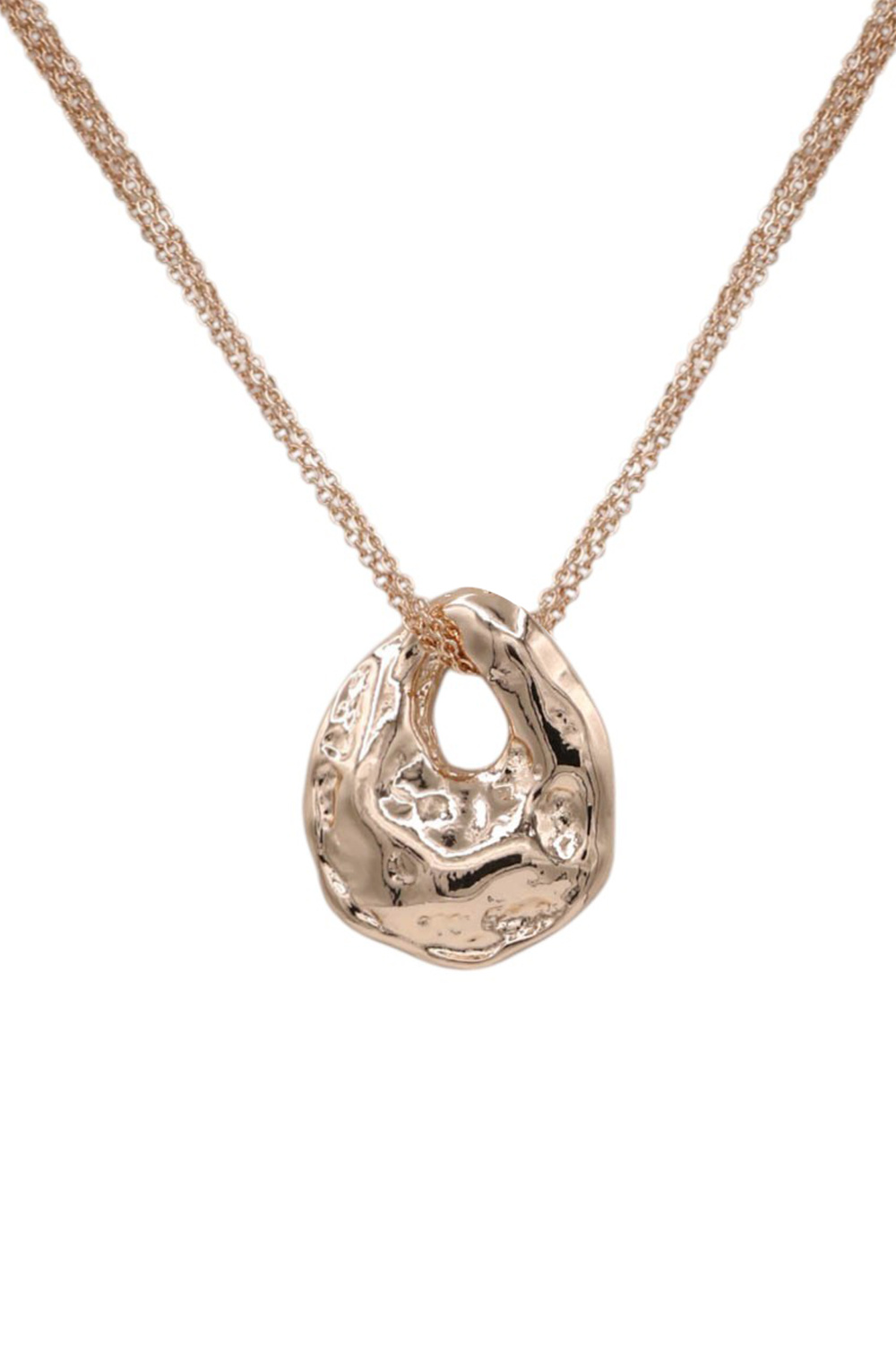 - A striking pendant necklace featuring an organic, molten-inspired textured design for a bold, modern look. Lightweight and versatile, this piece adds artisanal charm and visual interest to both everyday and dressy outfits.