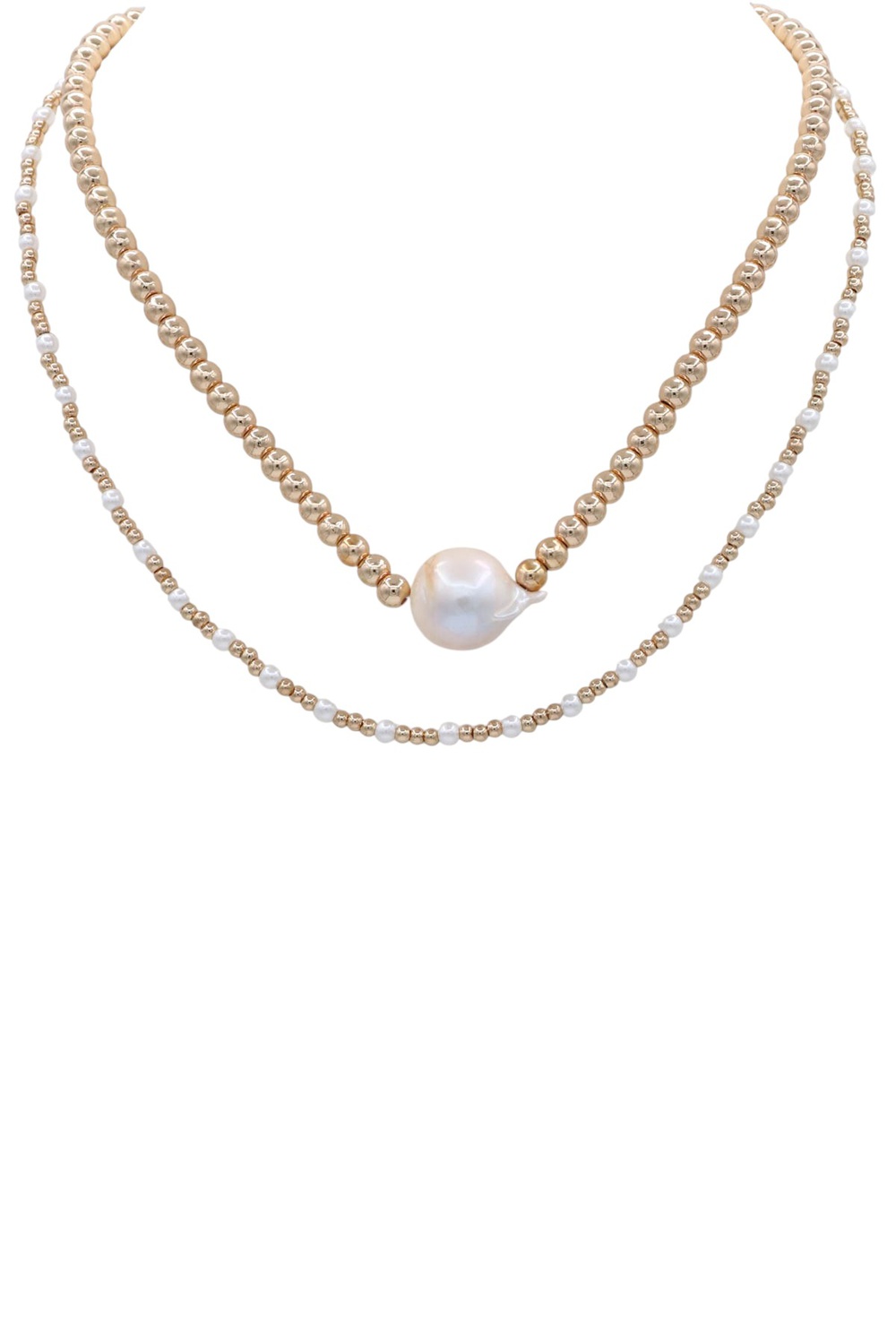- This layered necklace showcases organic-shaped cream pearl pendant that create a beautifully natural and feminine style. Perfect for adding a touch of elegance to any outfit.