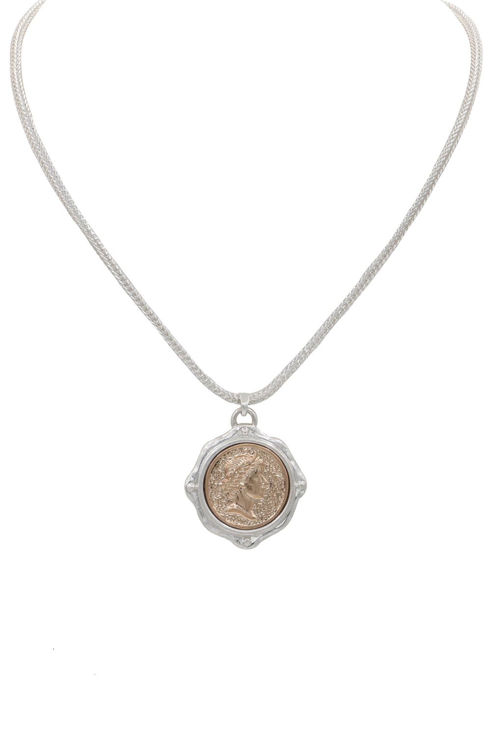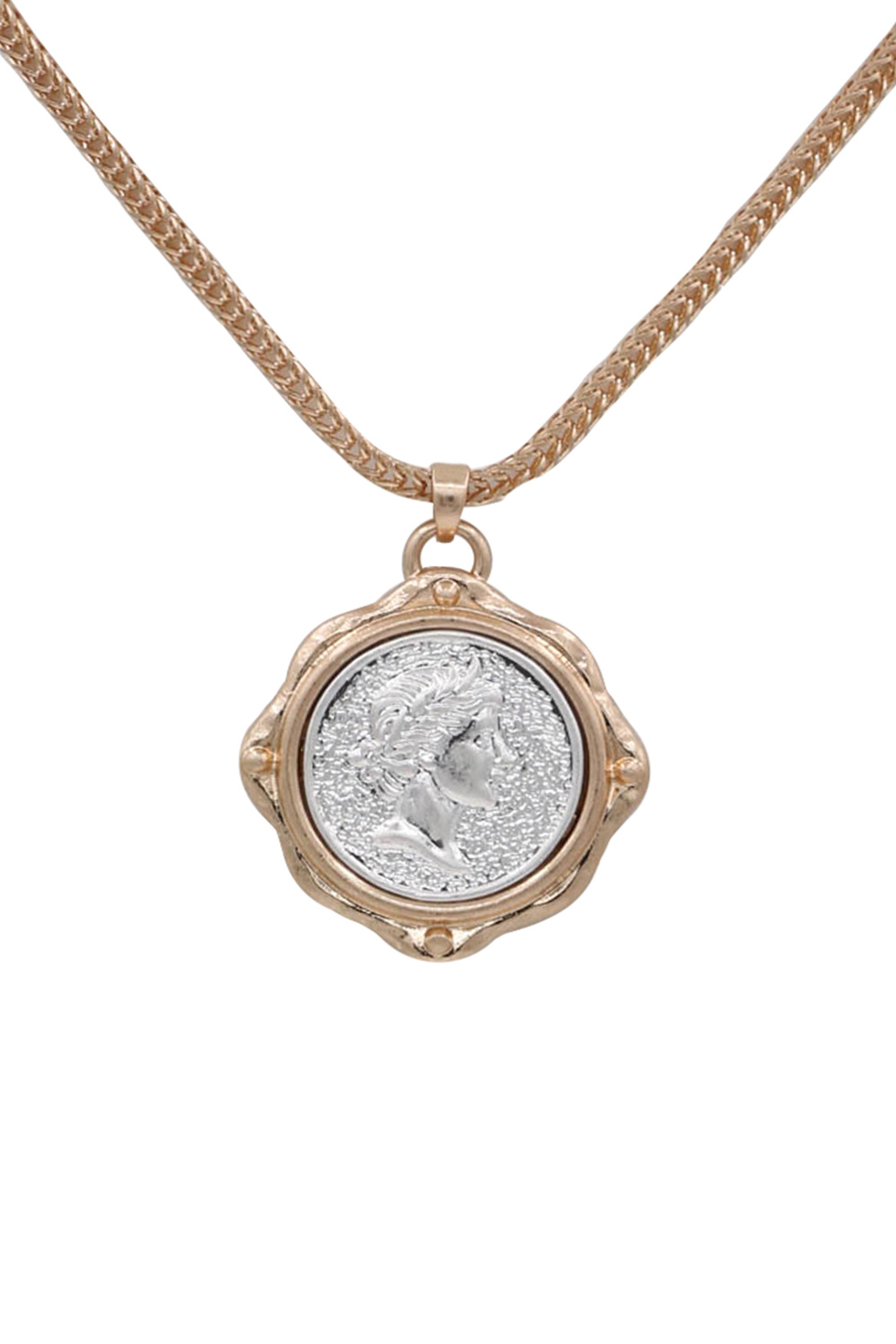 - A stylish necklace featuring layered two-tone chains accented with coin charms for a modern, chic look. Lightweight and versatile, it's perfect for layering or wearing solo to elevate everyday and dressy outfits.
