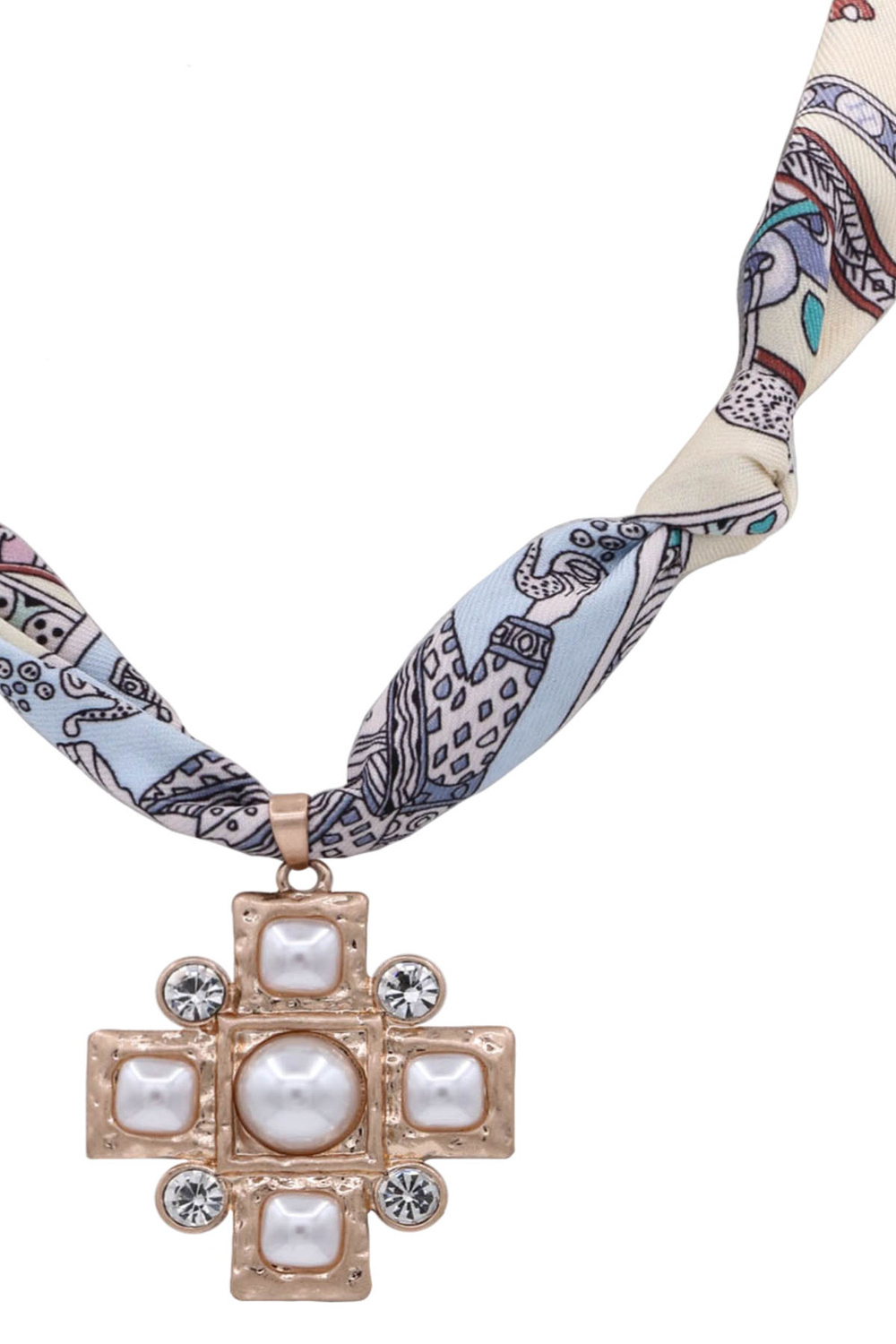 - Stylish western-inspired necklace featuring a bold cross pendant on a classic bandana cord. Perfect for adding rustic charm to any outfit.