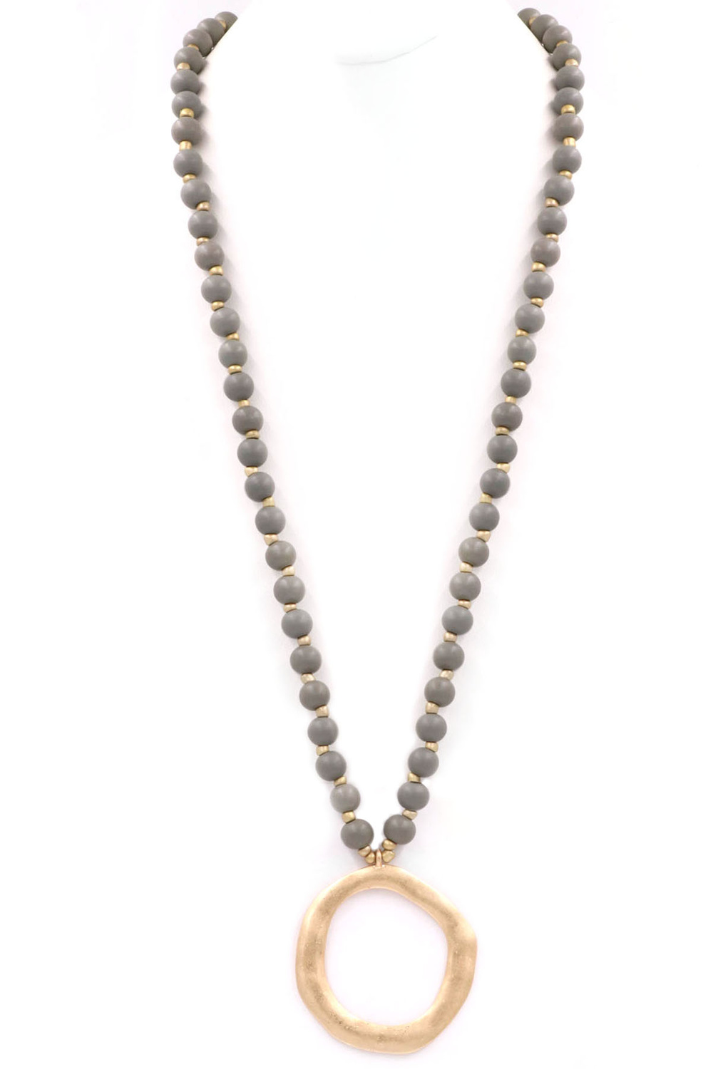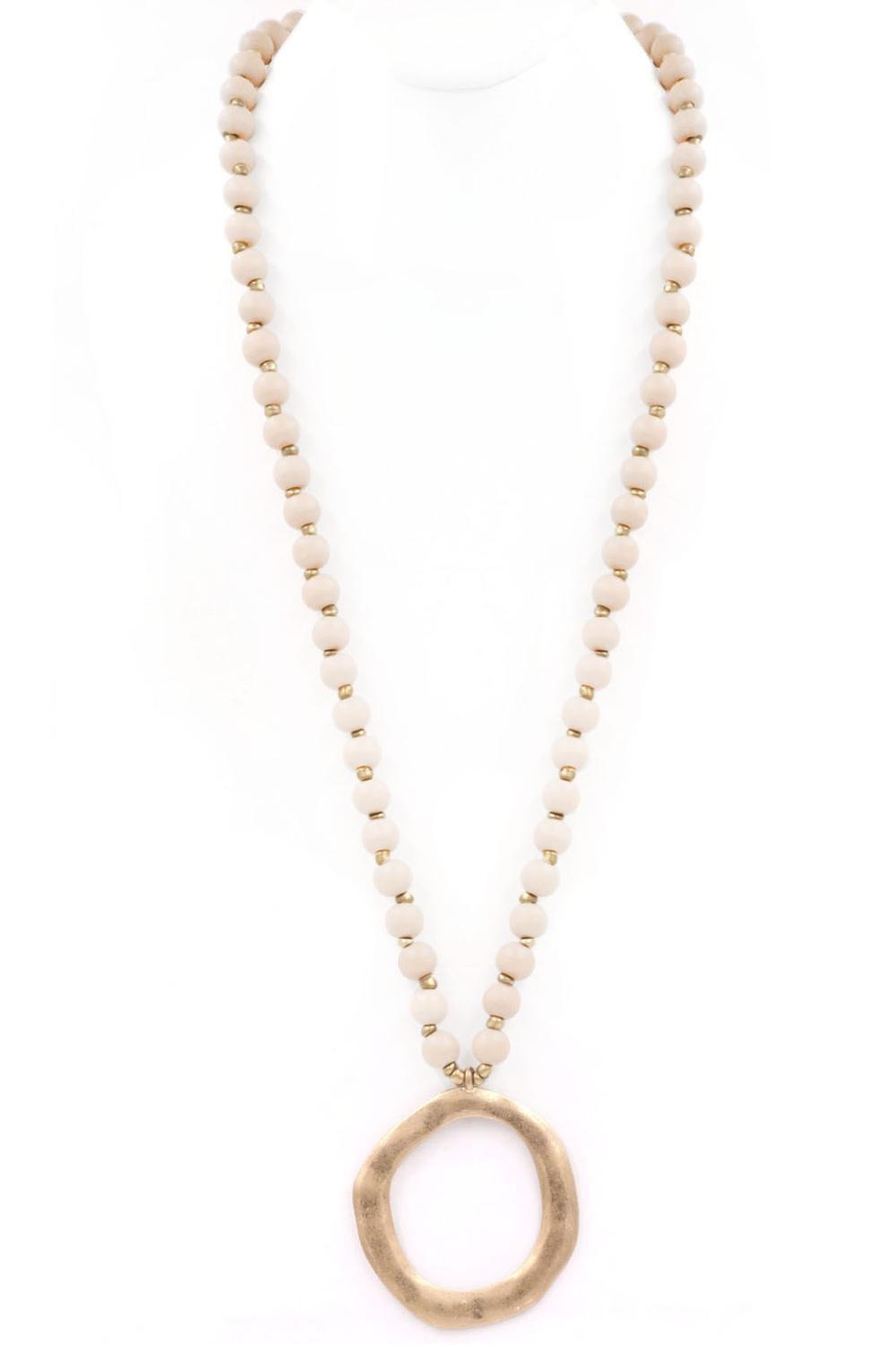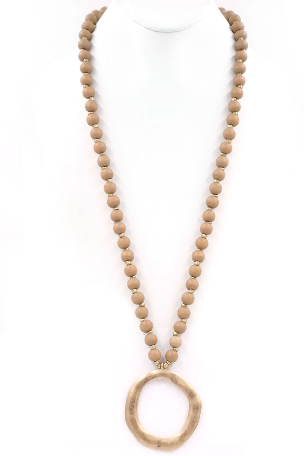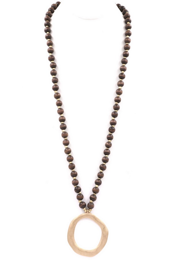 - Wood bead metal ring pendant necklace