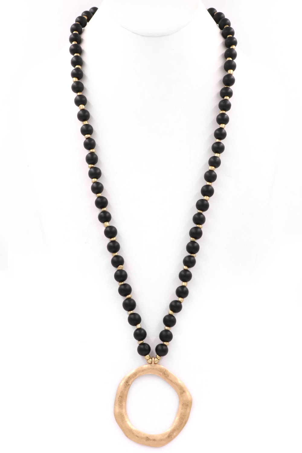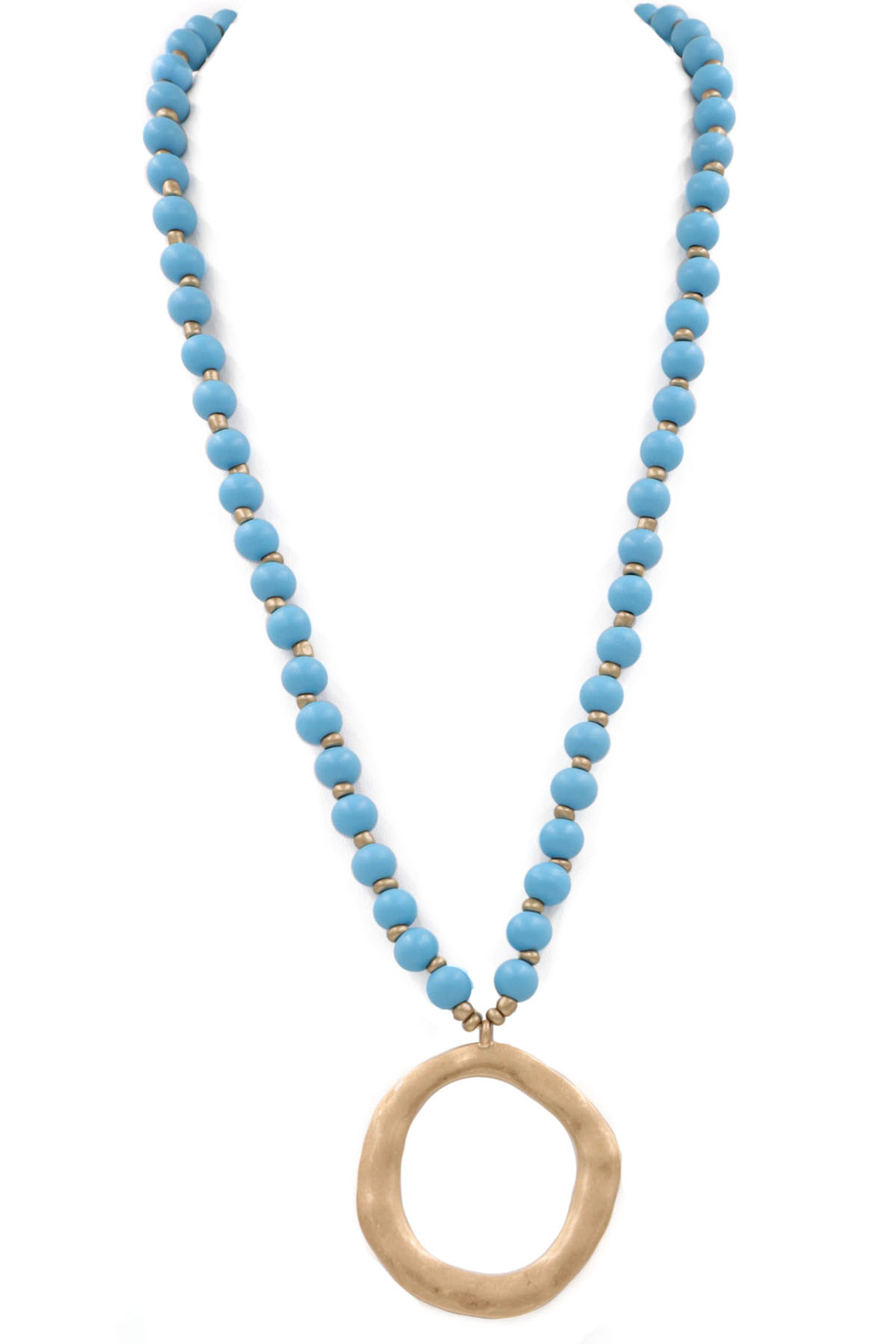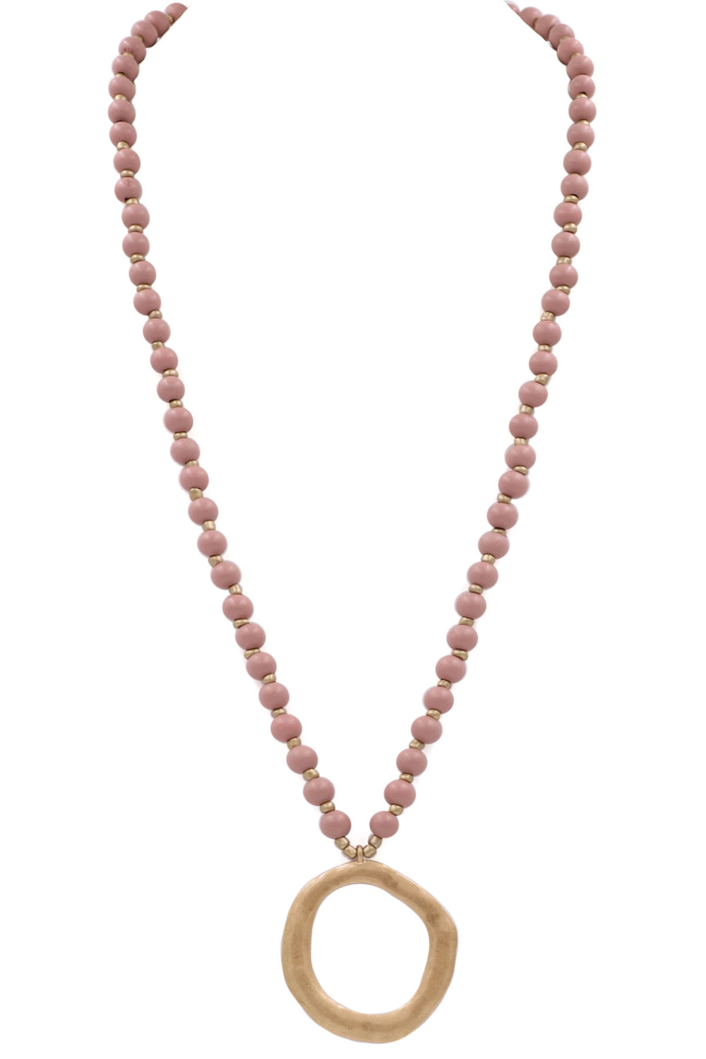 - Wood bead metal ring pendant necklace