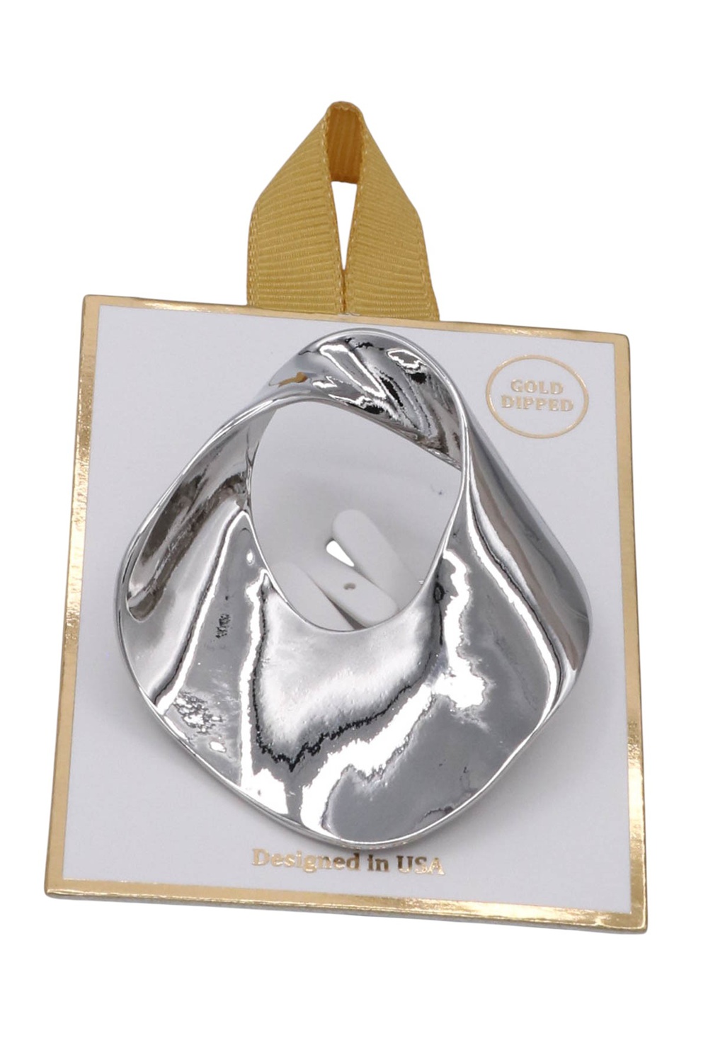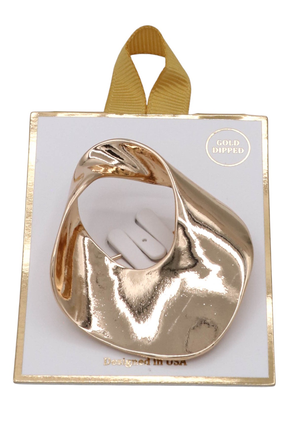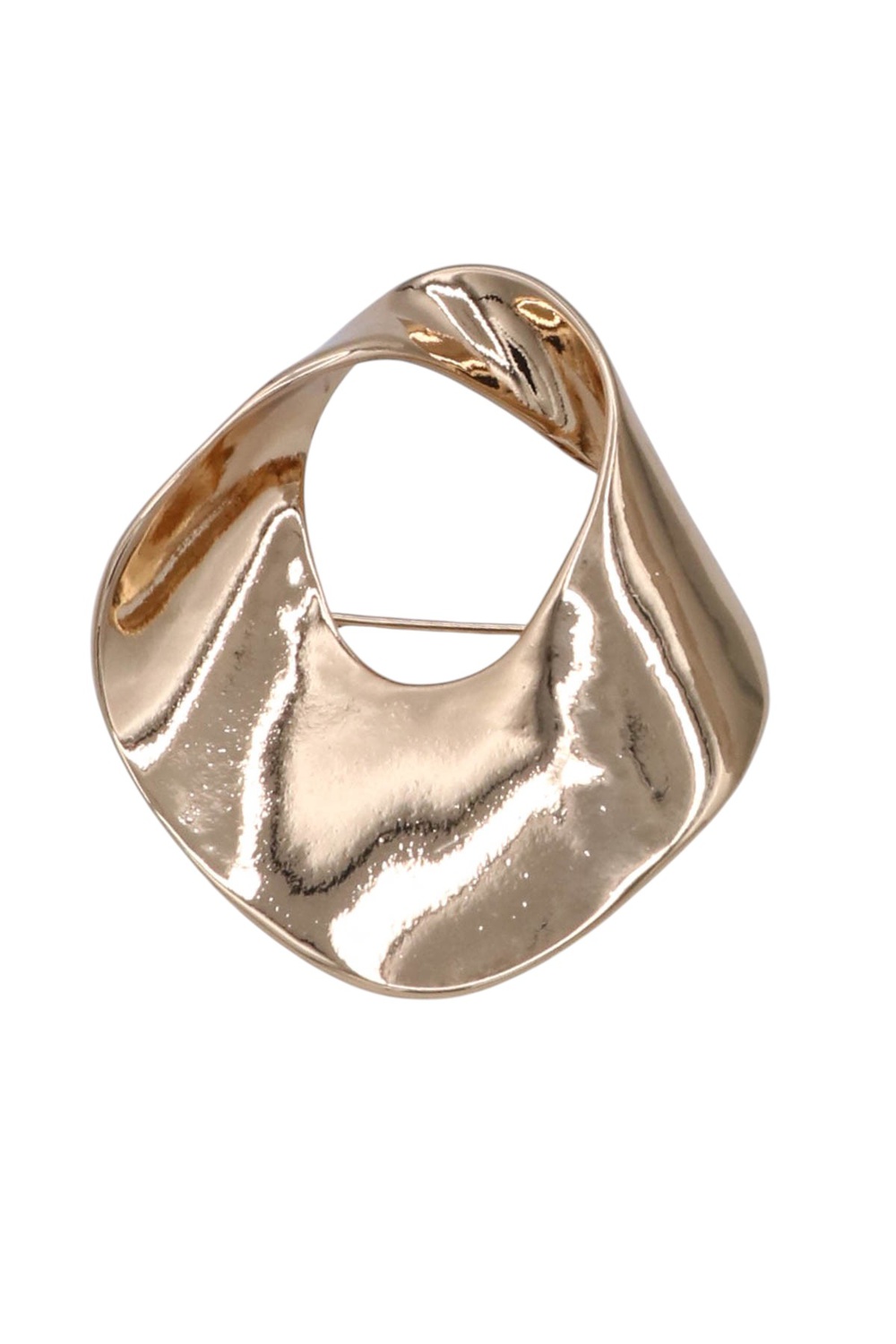 - Stylish accessory with a unique twisted abstract shape in polished metal. Ideal for layering on outerwear or gifting to art-inspired jewelry lovers.