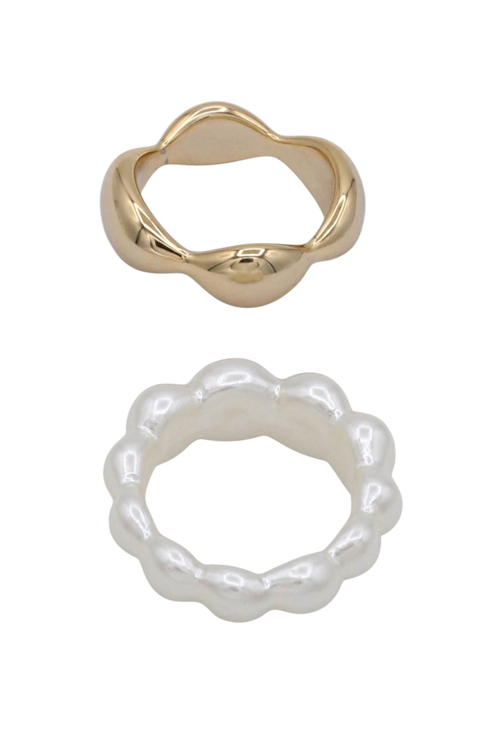 - Chic and timeless, this duo ring set features sleek metal bands adorned with soft cream pearl accents. Ideal for everyday elegance or gifting.