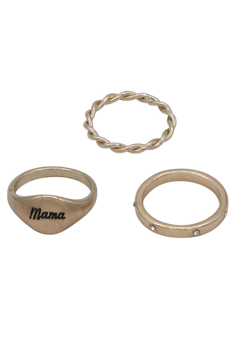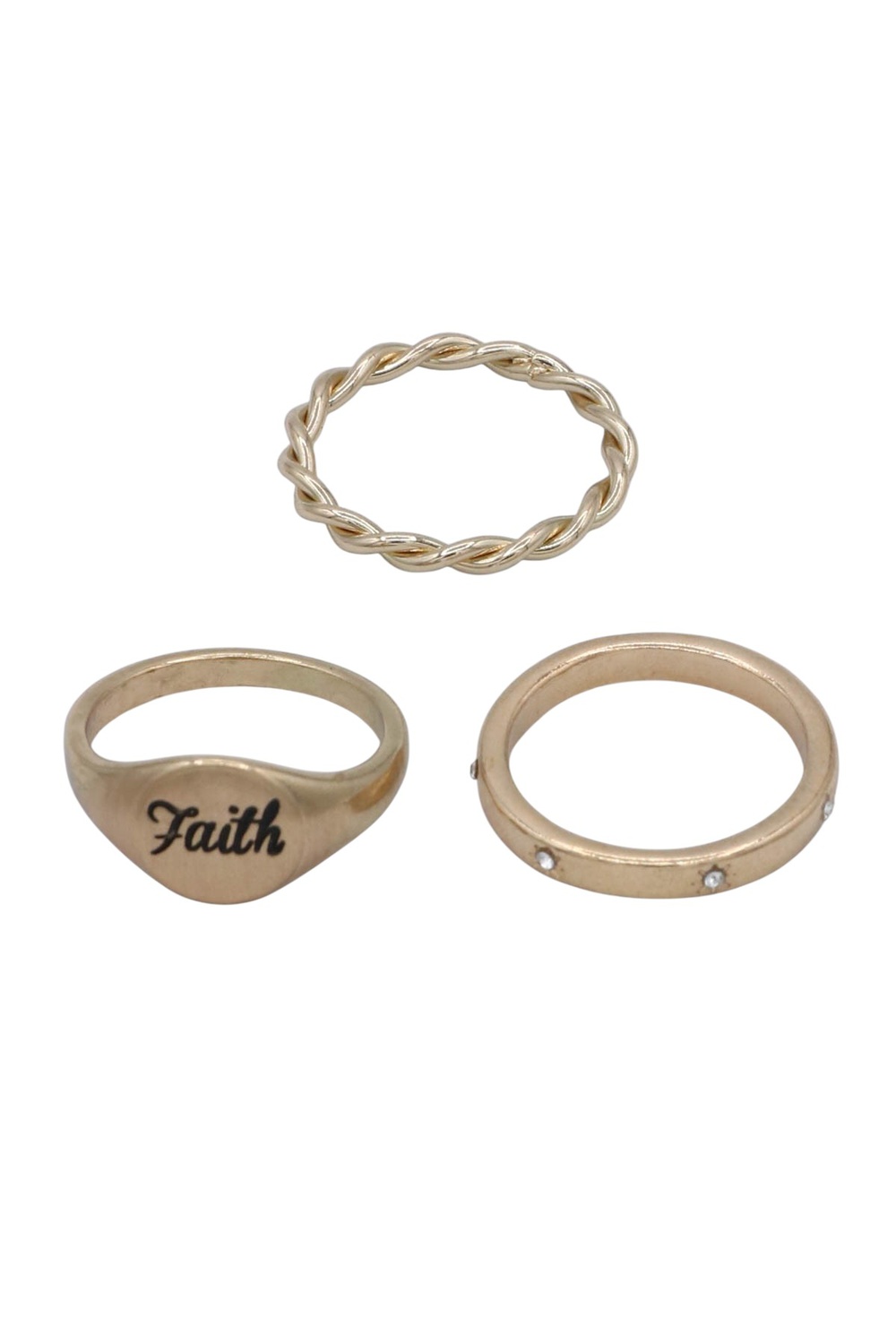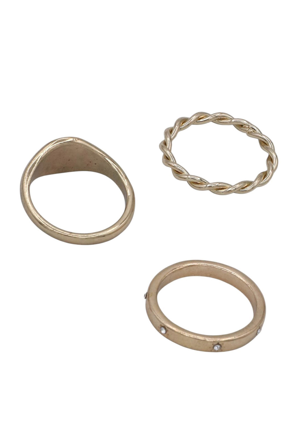 Metal Rhinestone & Semi-Precious Stone Ring Trio